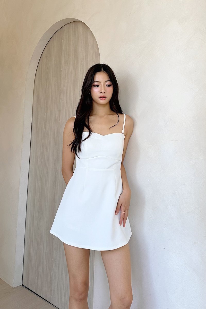 Althea Sweetheart Neckline Dress Romper in White