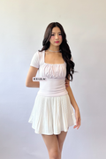 Imnida features a sleek straight neckline, delicate ruching, and a soft, feminine silhouette—perfect for effortless everyday elegance.