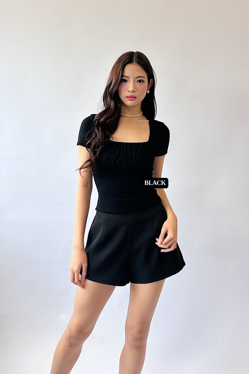 (BARE/BASIC) Imnida Straight Neckline Ruched Top