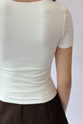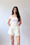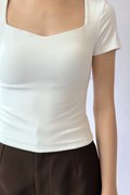 Made of cotton ribbed knit. Fully-lined. Non-sheer. Stretchable. Comes with removable one-piece padding. Features queen anne neckline and sleeves. If you are in between sizes, you may choose to stick to your usual sizing.