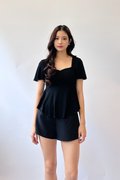 (BARE/BASIC) Liara Ruched Babydoll Sleeved Top