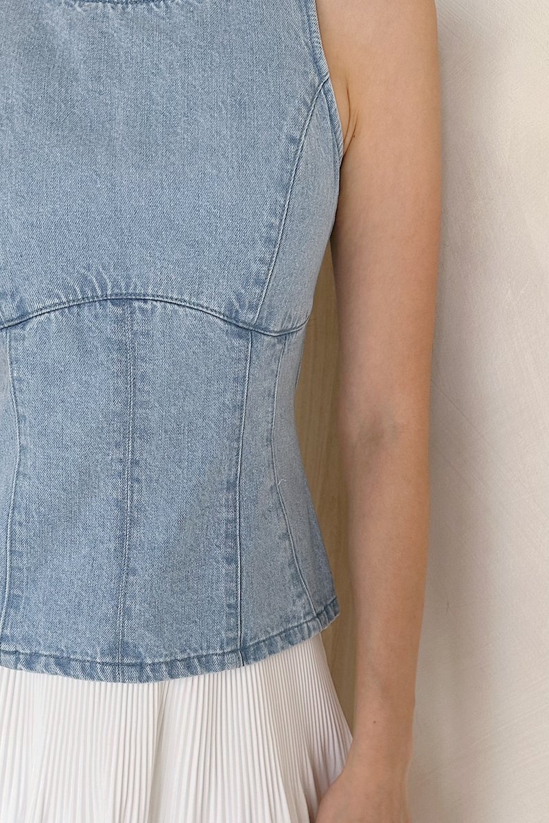 Carrie Denim Long Top in Light Wash