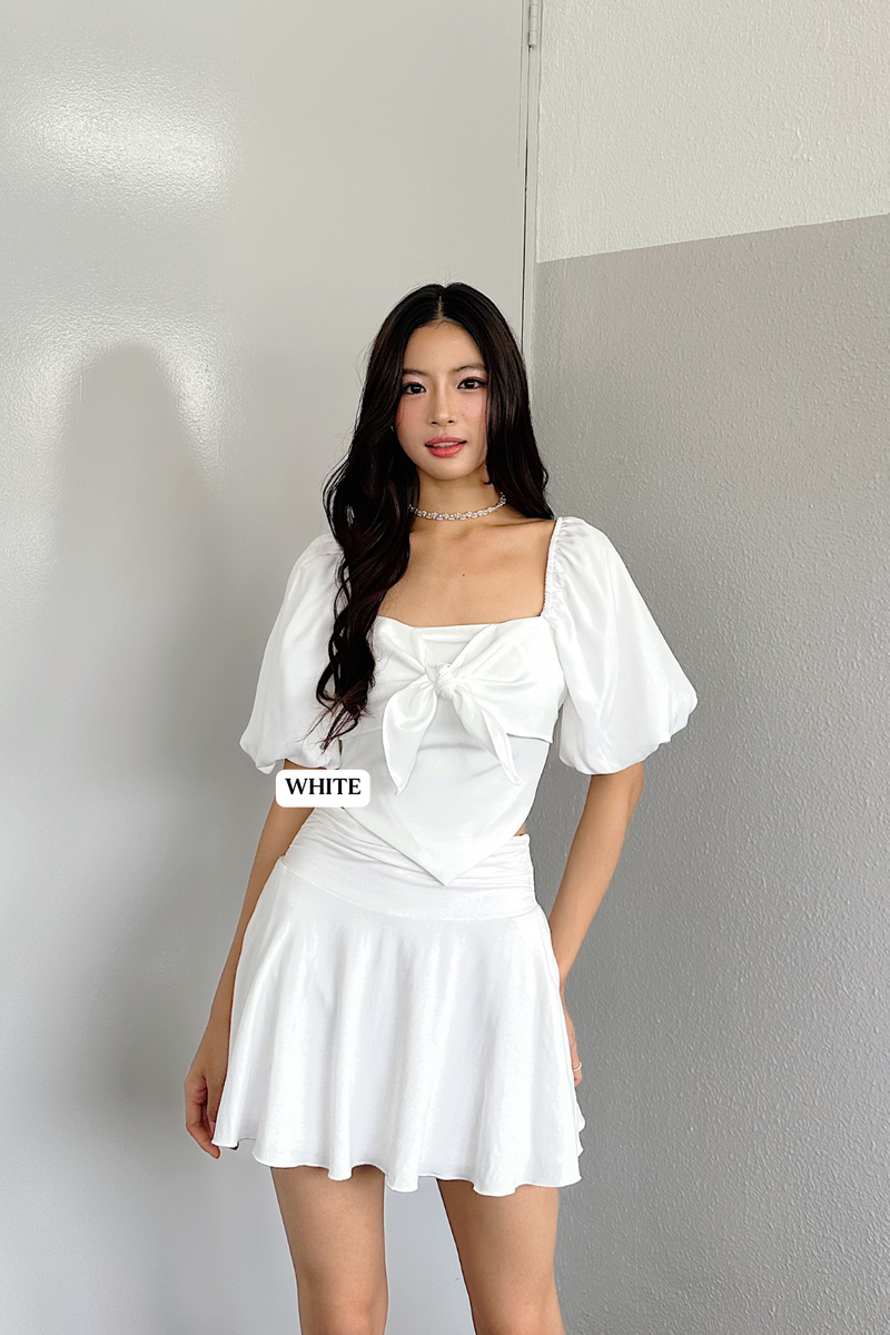 Made of satin. Fully-lined. Non-sheer. Comes with removable padding. Features sleeves, smocked back and self tie front. If you are in between sizes, you may choose to size down for a fitted look.