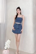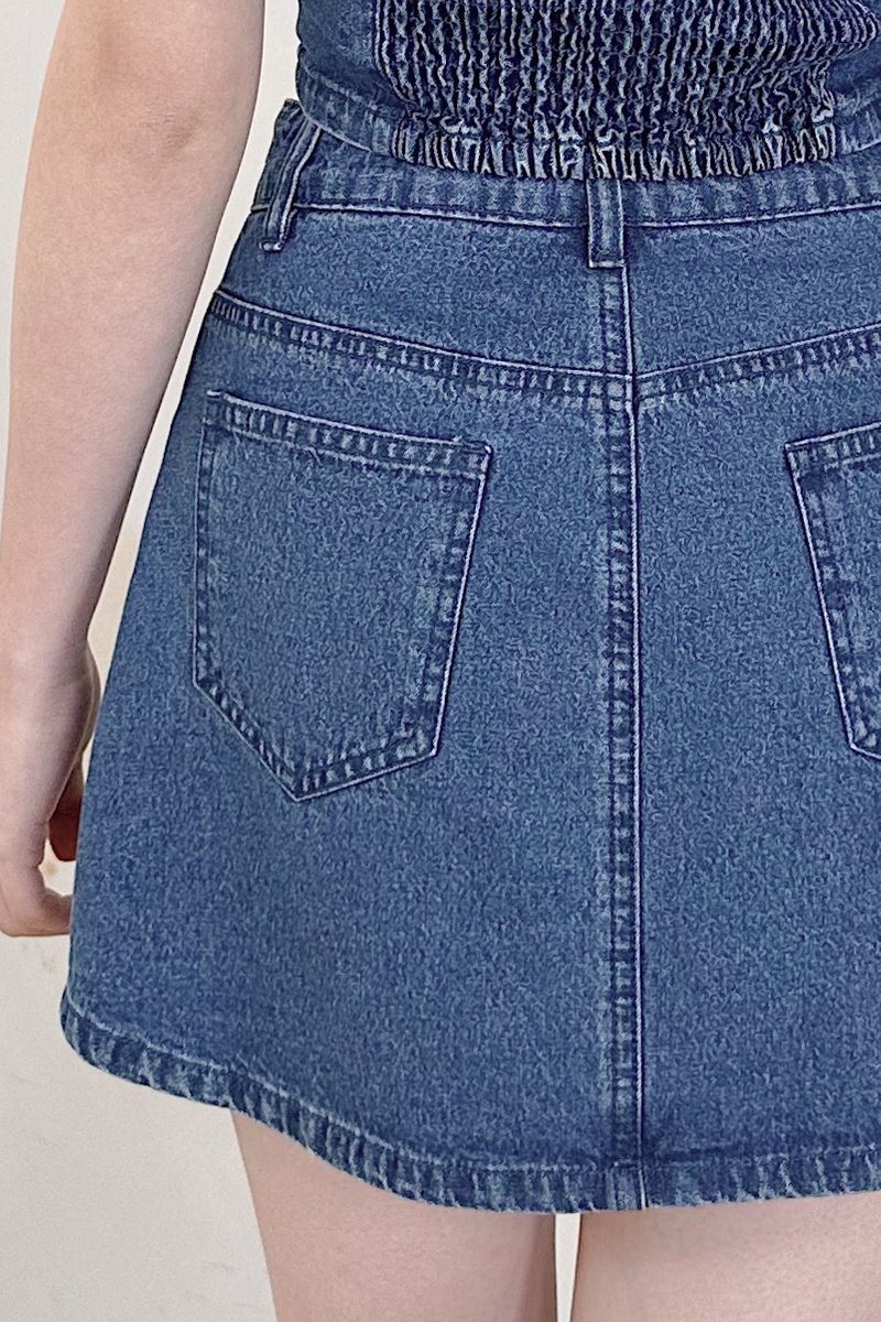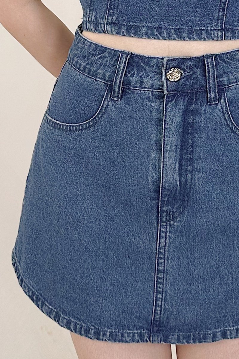 Haisley Button A-Line Denim Skorts in Dark Wash