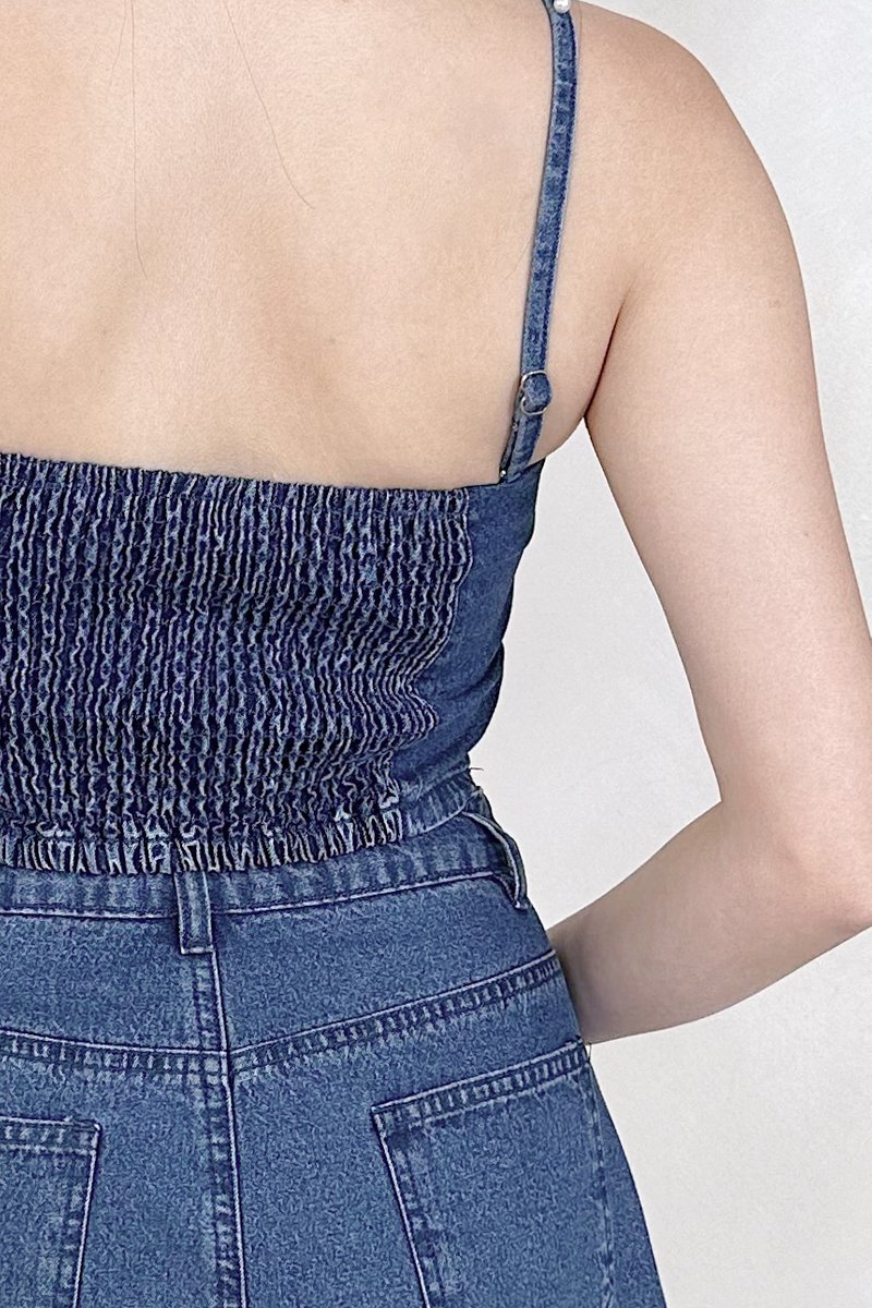 Haisley Top in Light Wash, Mid Wash & Dark Wash comes with detachable adjustable pearl straps