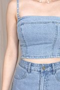 Haisley Top in Light Wash, Mid Wash & Dark Wash comes with detachable adjustable pearl straps