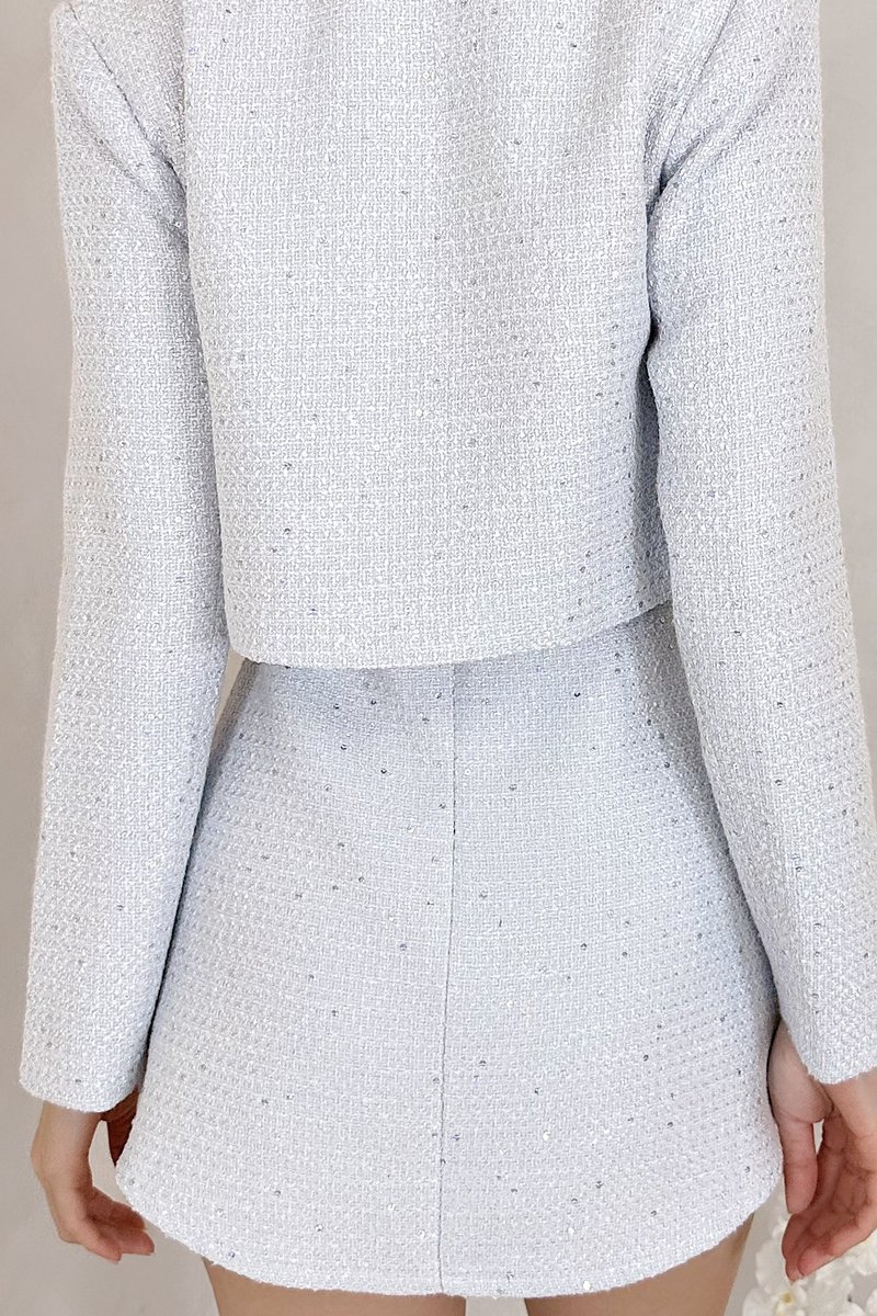 Discover Ivie, our sequin tweed blazer is an unexpected and dazzling fusion of classic sophistication and modern sparkle.