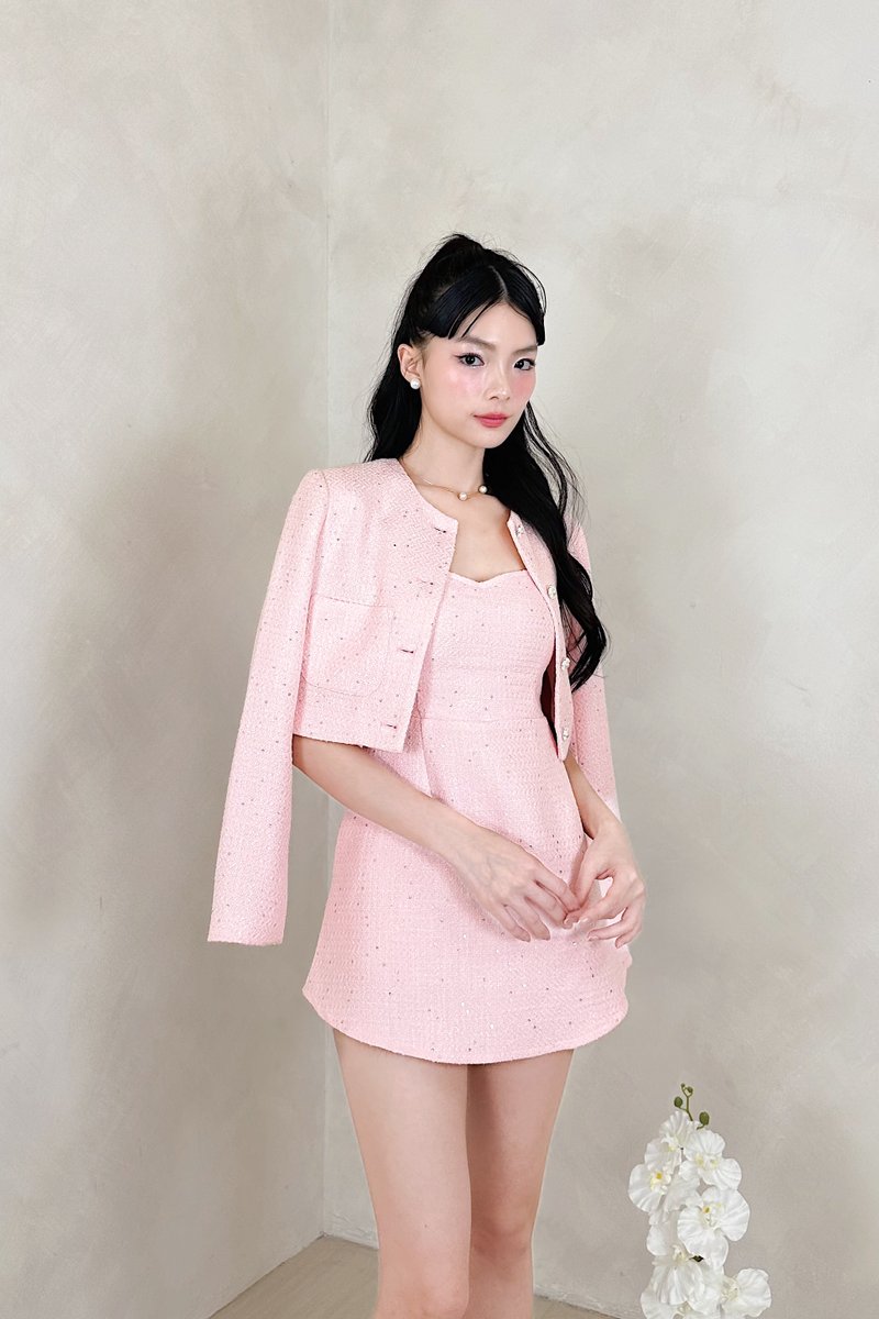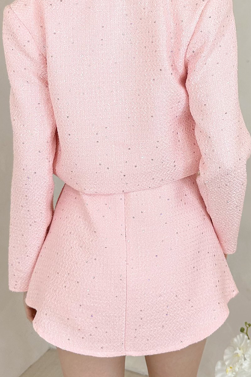 Ivie Sequin Tweed Blazer in Baby Pink