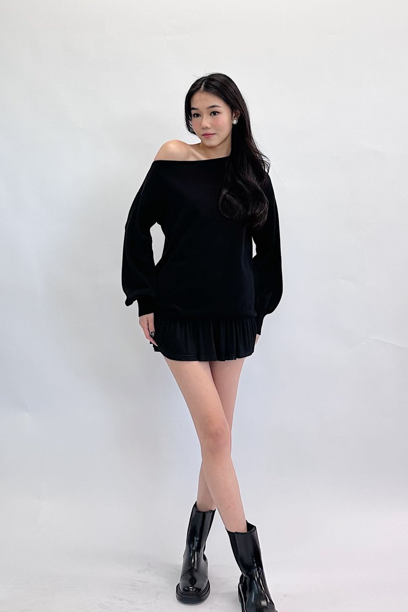 Made of knit. Fully-lined. Non-sheer. Stretchable. Features off shoulder detailing. If you are in between sizes, you may choose to stick to your usual sizing.