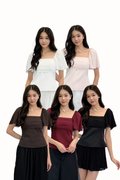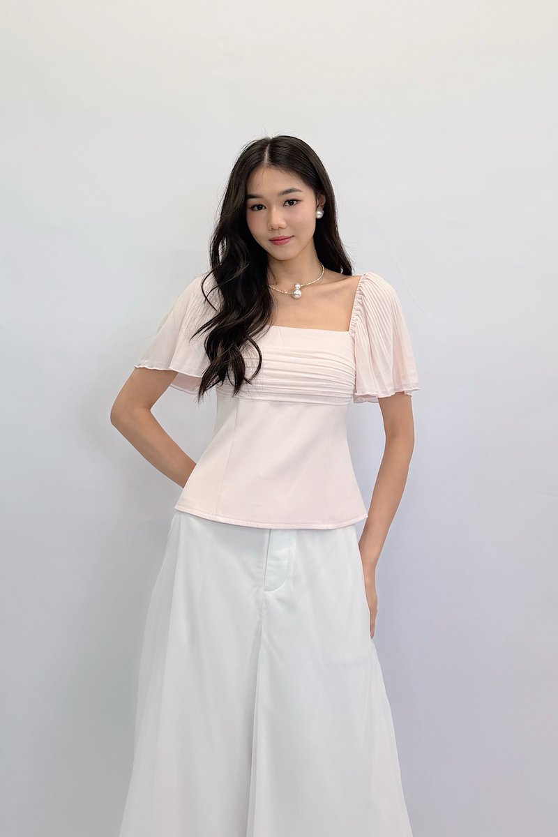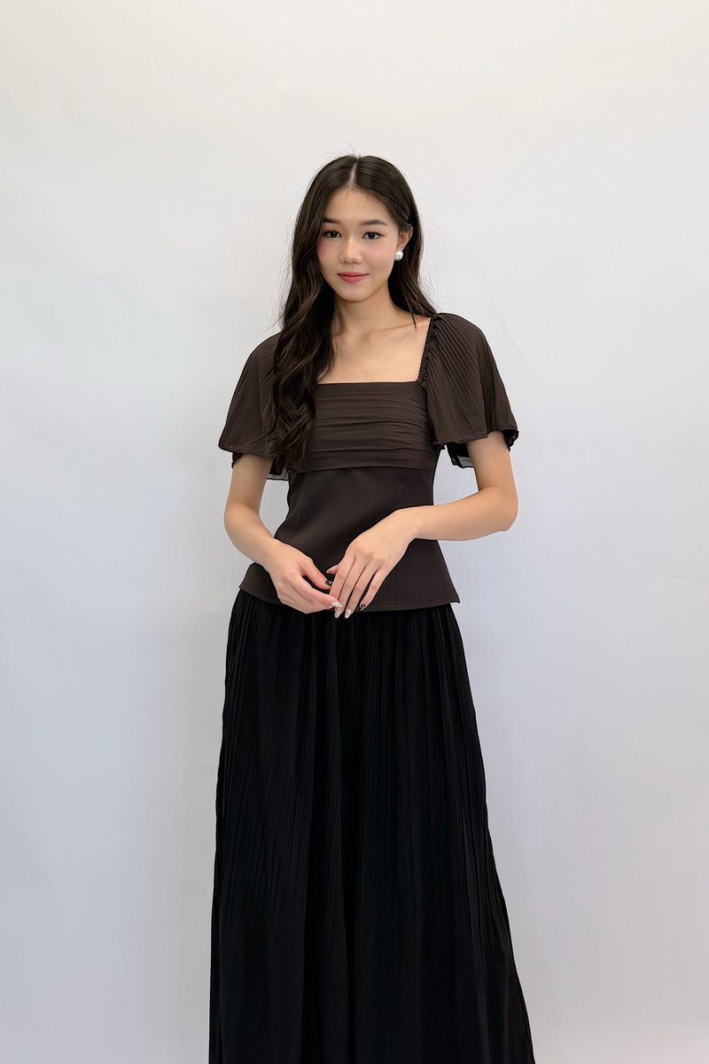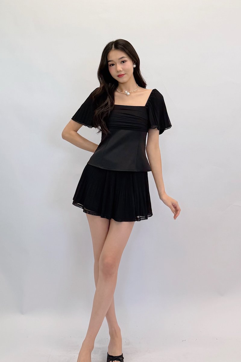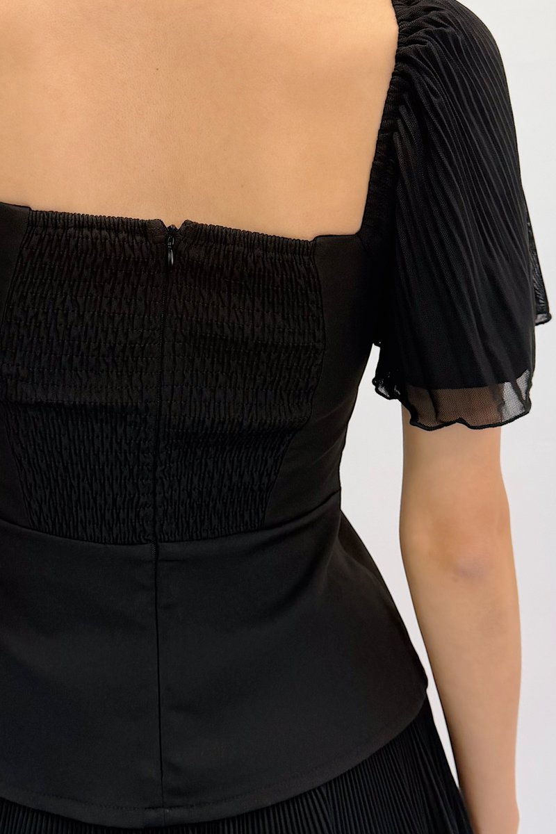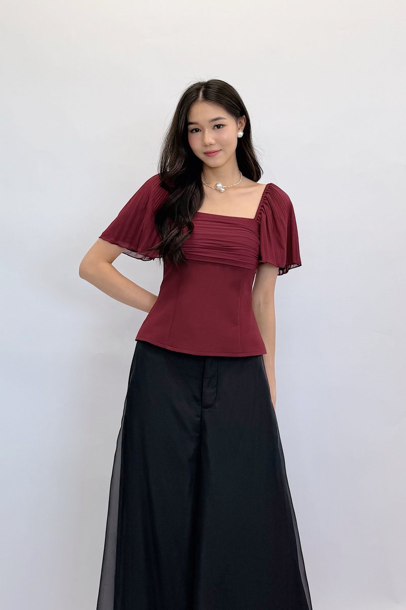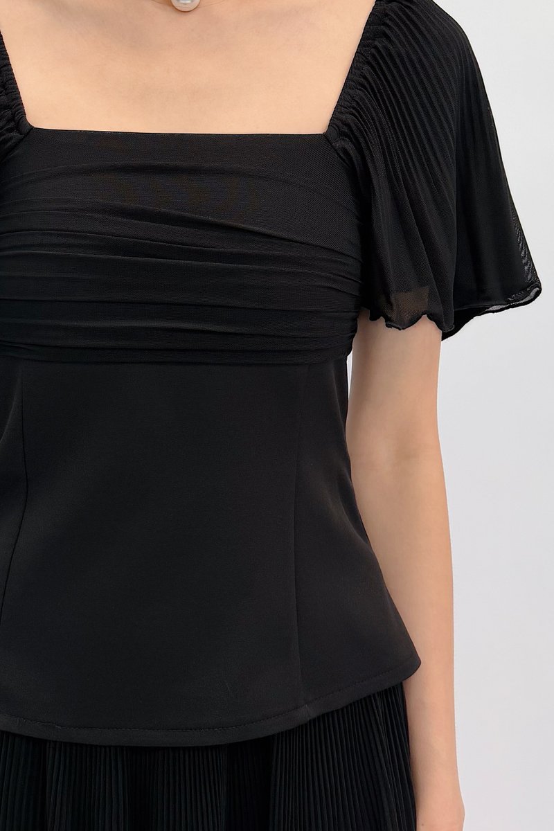 *PO: ETA MID DEC* (QUEEN OF TEXTURES) Yvette Mesh Ruched Pleated Sleeve Top