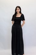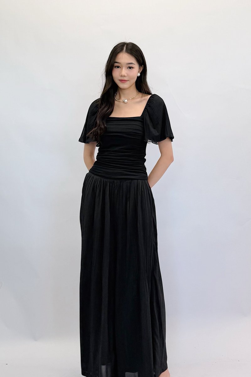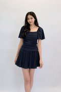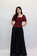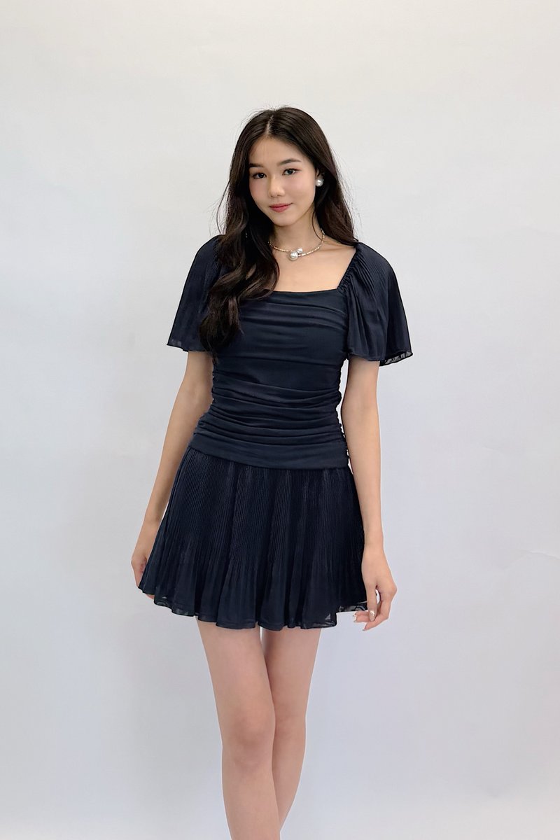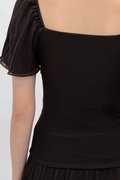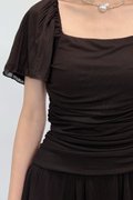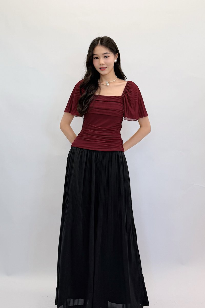 (PREMIUM ICE MESH) Meline Mesh Ruched Pleated Sleeve Top