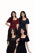Made of mesh. Fully-lined. Non-sheer. Slightly stretchable due to anti-slip band. Comes with one piece removable padding. Features ruching, mesh pleated sleeves and concealed side zip. If you are in between sizes, you may choose to stick to your usual sizing.