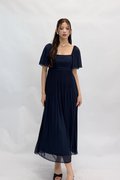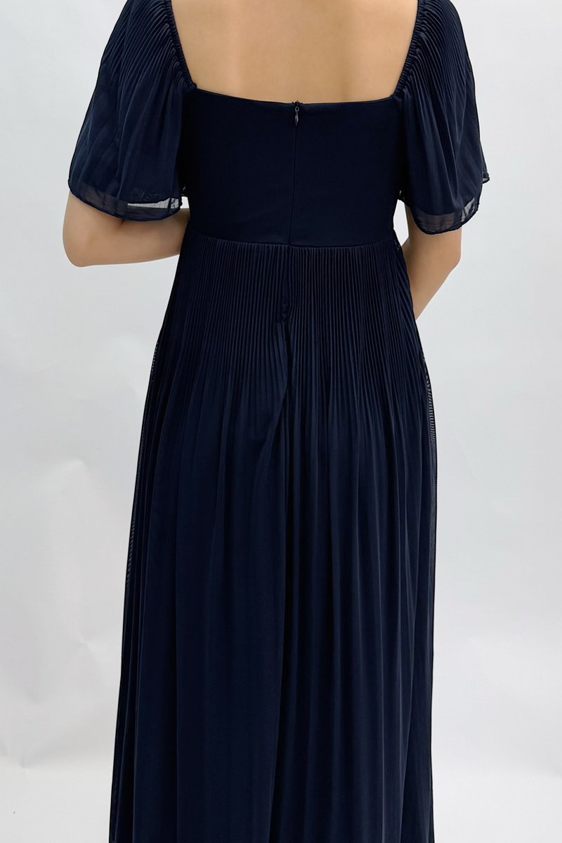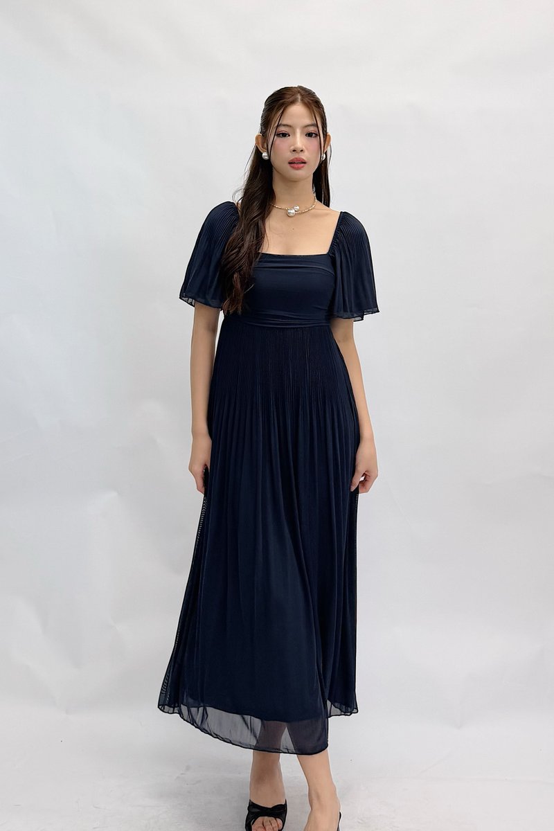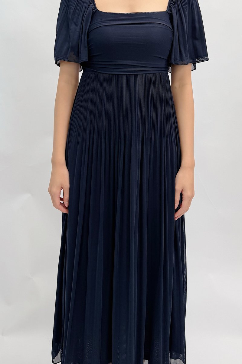 (PREMIUM ICE MESH) Ora Mesh Pleated Sleeve Midi Dress