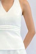 Made of polyester blend. Fully lined. Non-sheer. Slightly stretchable due to smocked back. Comes with removable one piece padding. Features concealed side zip, a halter neckline and pleats. If you are in between sizes,you may choose to stick to your usual sizing.