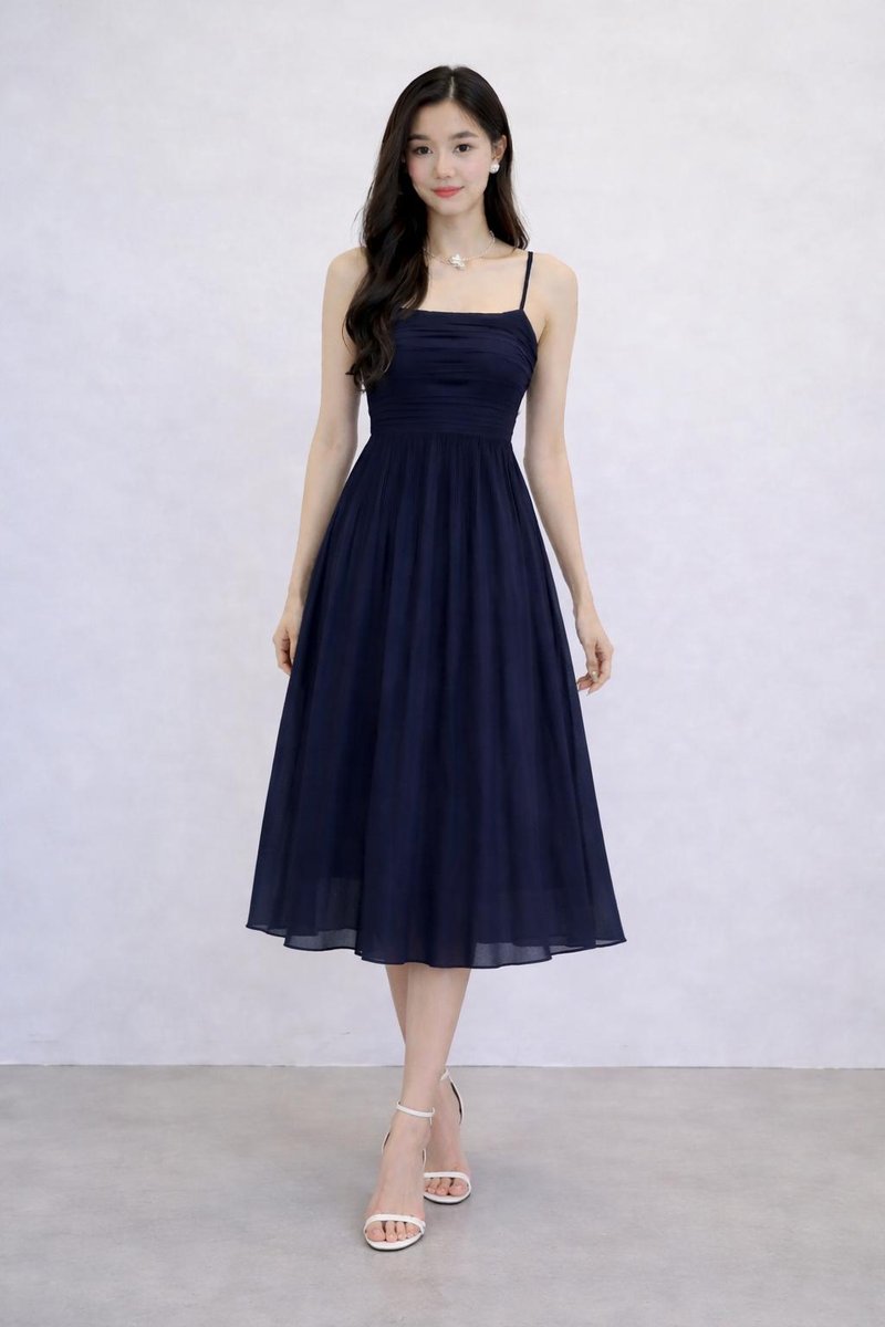 *PREORDER* (PREMIUM ICE MESH) Ora Mesh Pleated Sleeveless Midi Dress