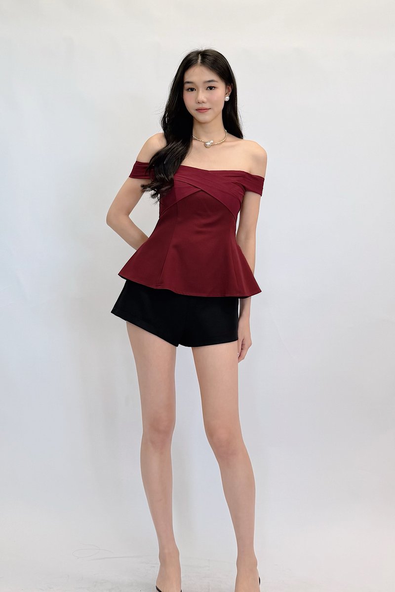 *PREORDER* (QUEEN OF TEXTURES) Zina Panel Mesh Off Shoulder Long Line Top