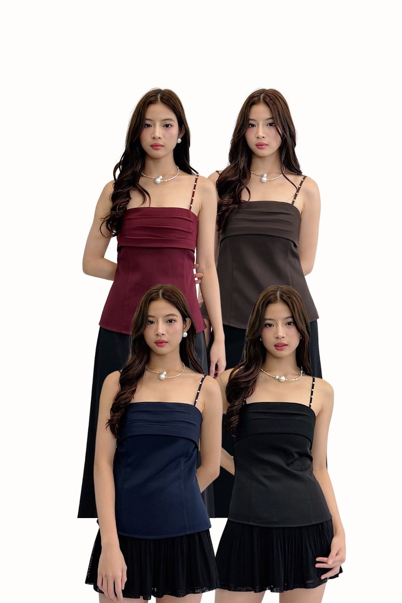 Made of polyester blend and mesh. Fully-lined. Non-sheer. Slightly stretchable due to smocked back and anti-slip band. Comes with one piece removable padding. Features Mikayla’s signature adjustable (6mm) pearl strap, pleats detailing and concealed back zip. If you are in between sizes, you may choose to stick to your usual sizing.