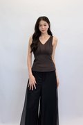 (QUEEN OF TEXTURES) Saela V Neckline Mesh Halter Top