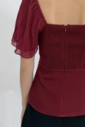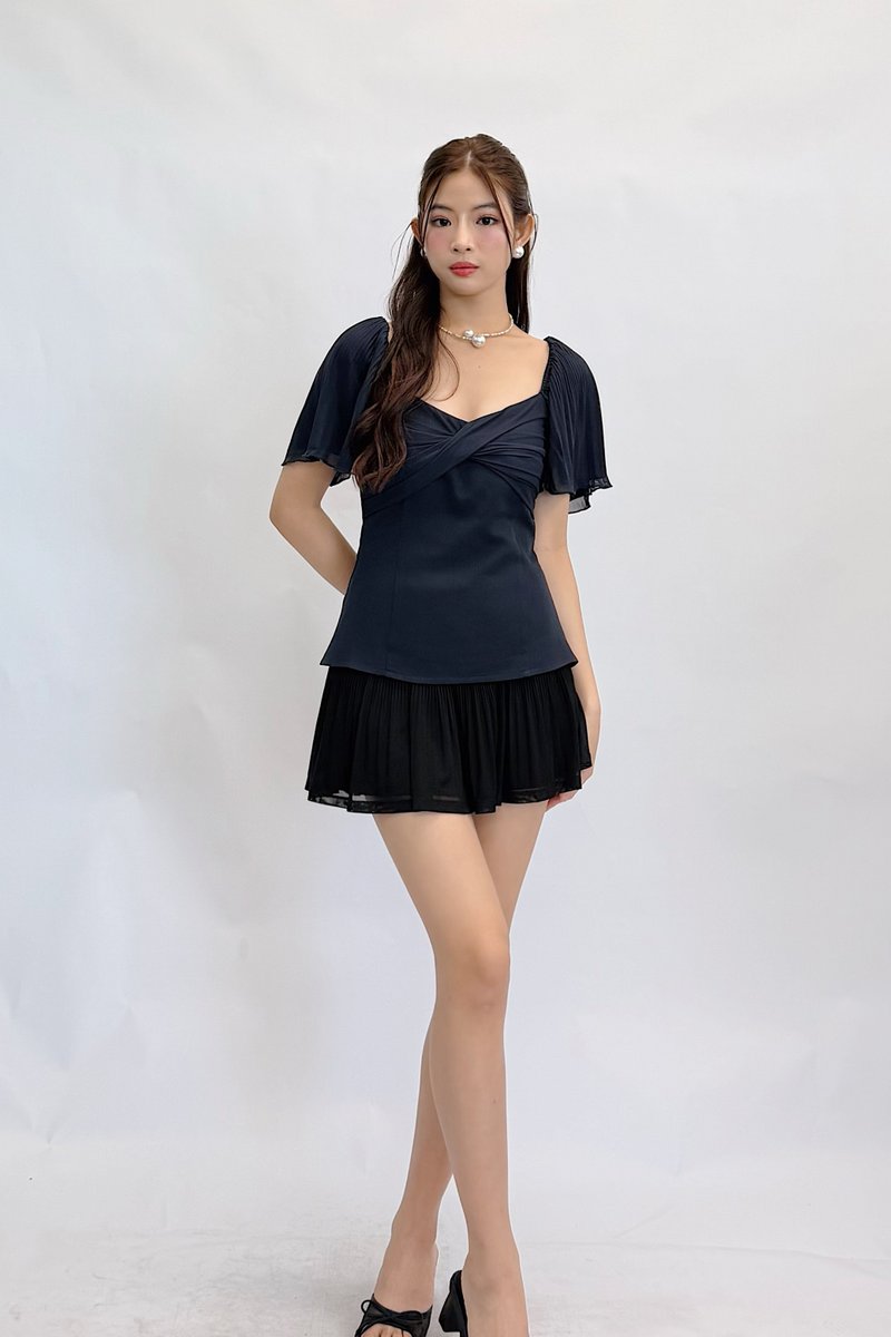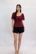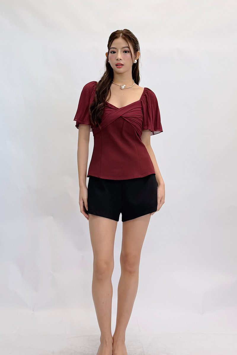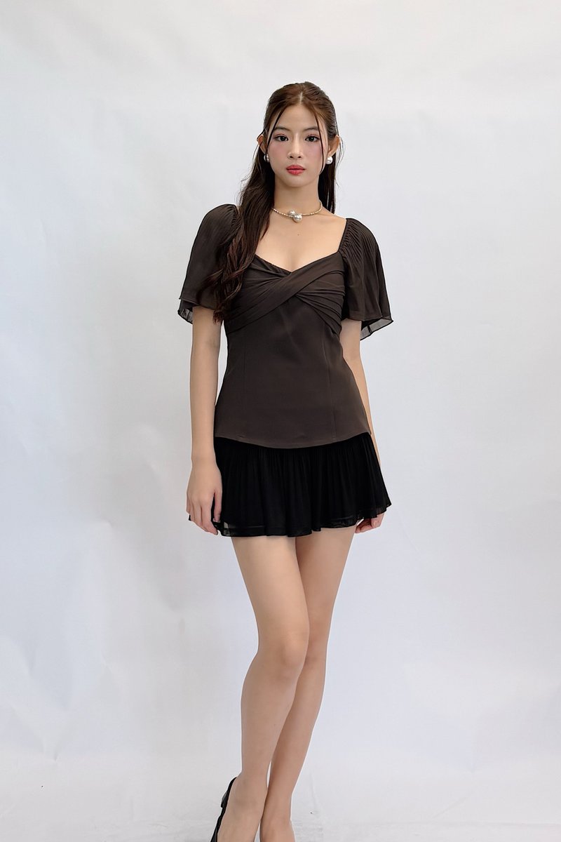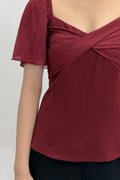 (QUEEN OF TEXTURES) Una V Neckline Pleated Sleeve Mesh Top