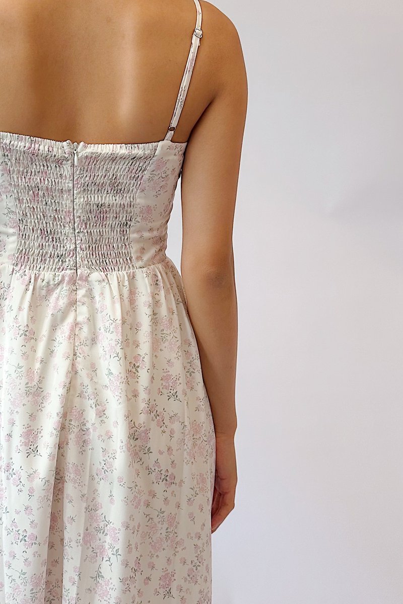 Made of polyester blend. Fully-lined. Non-sheer. Not stretchable. Comes with removable padding and anti-slip band. Features front ruching, adjustable straps, functional pockets and concealed back zip. If you are in between sizes, you may choose to stick to your usual sizing.
