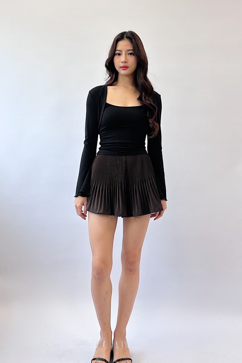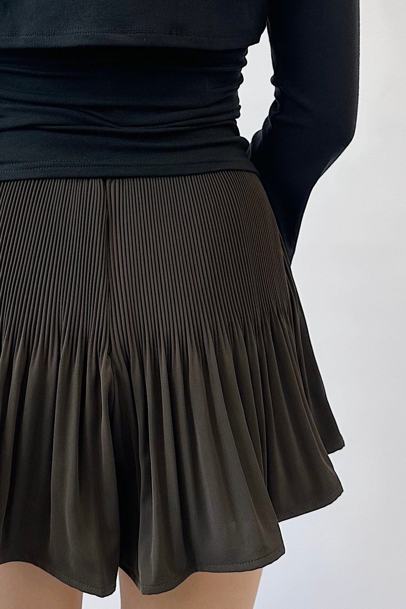 *PO: ETA END OCT* Tiana Micro Pleated Ruffles Shorts in Chocolate