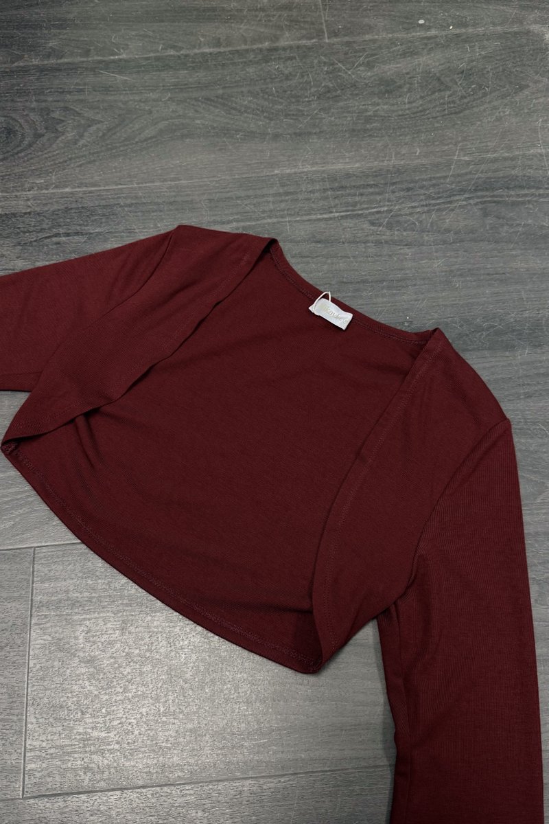 Cardigan: Made of cotton ribbed knit. Fully-lined. Non-sheer. Stretchable. Features cropped length, long sleeves and bell-sleeve.