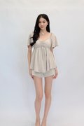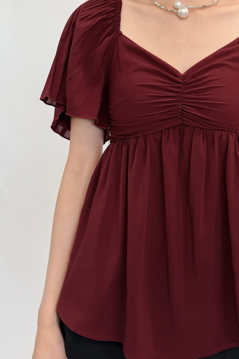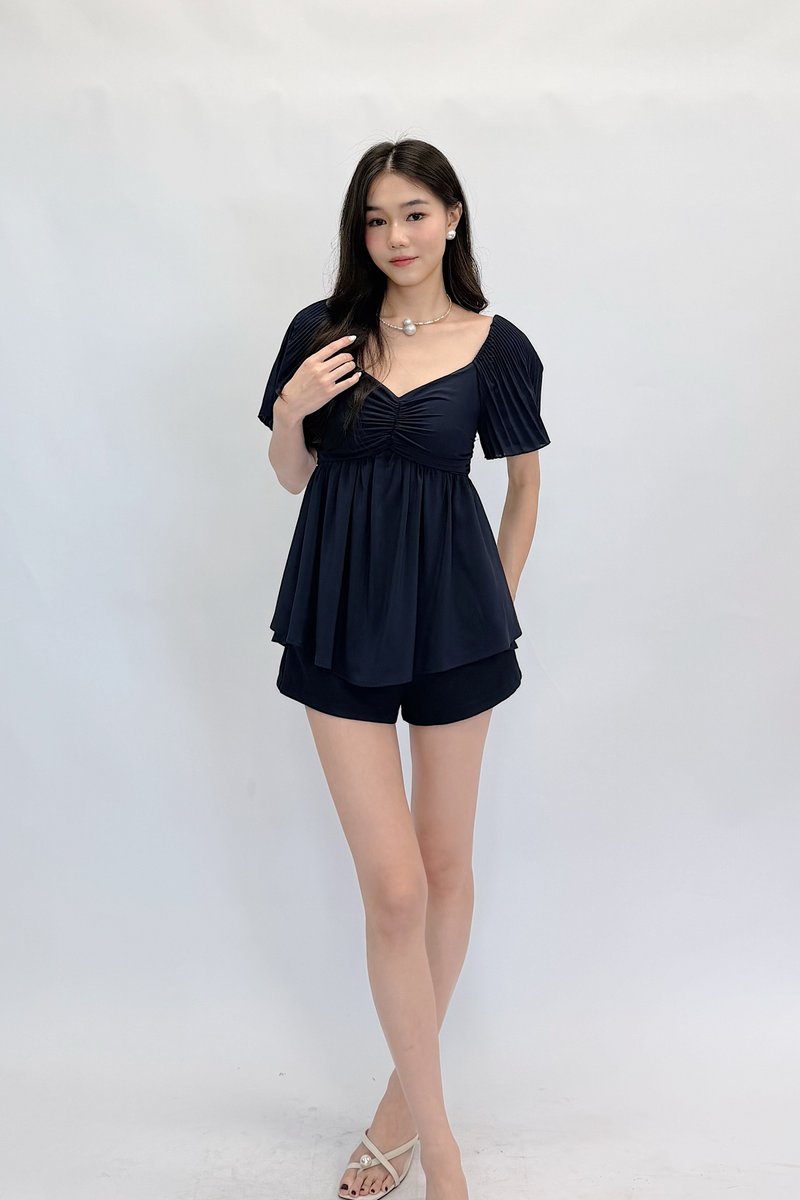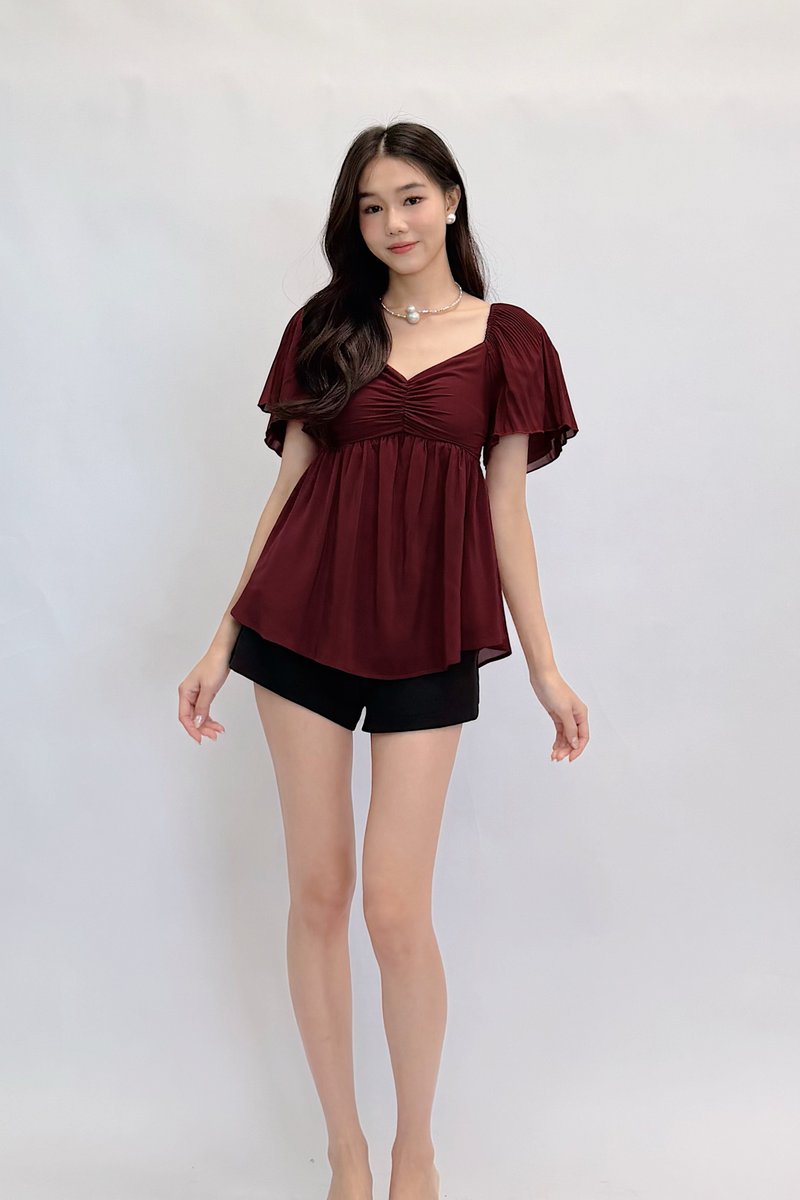 Shufu Babydoll Chiffon Pleated Sleeve Top