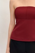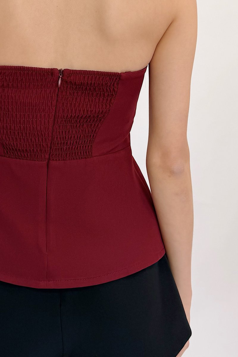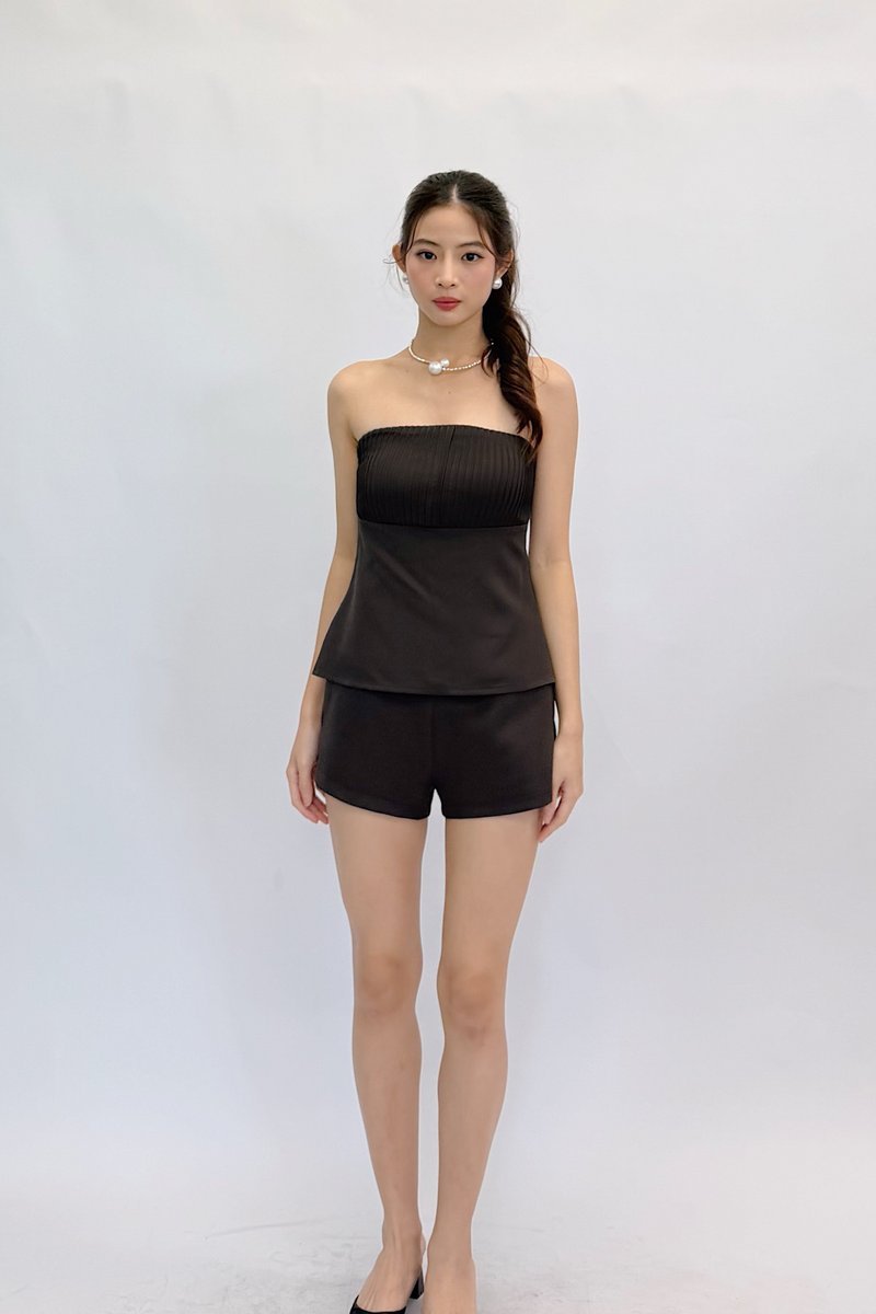 Made of polyester blend. Fully-lined. Non-sheer. Slightly stretchable due to smocked back and anti-slip band. Comes with one piece removable padding. Features pleats, Mikayla’s signature detachable adjustable (6mm) pearl straps, detachable adjustable plain straps and concealed back zip. If you are in between sizes, you may choose to stick to your usual sizing.