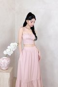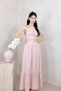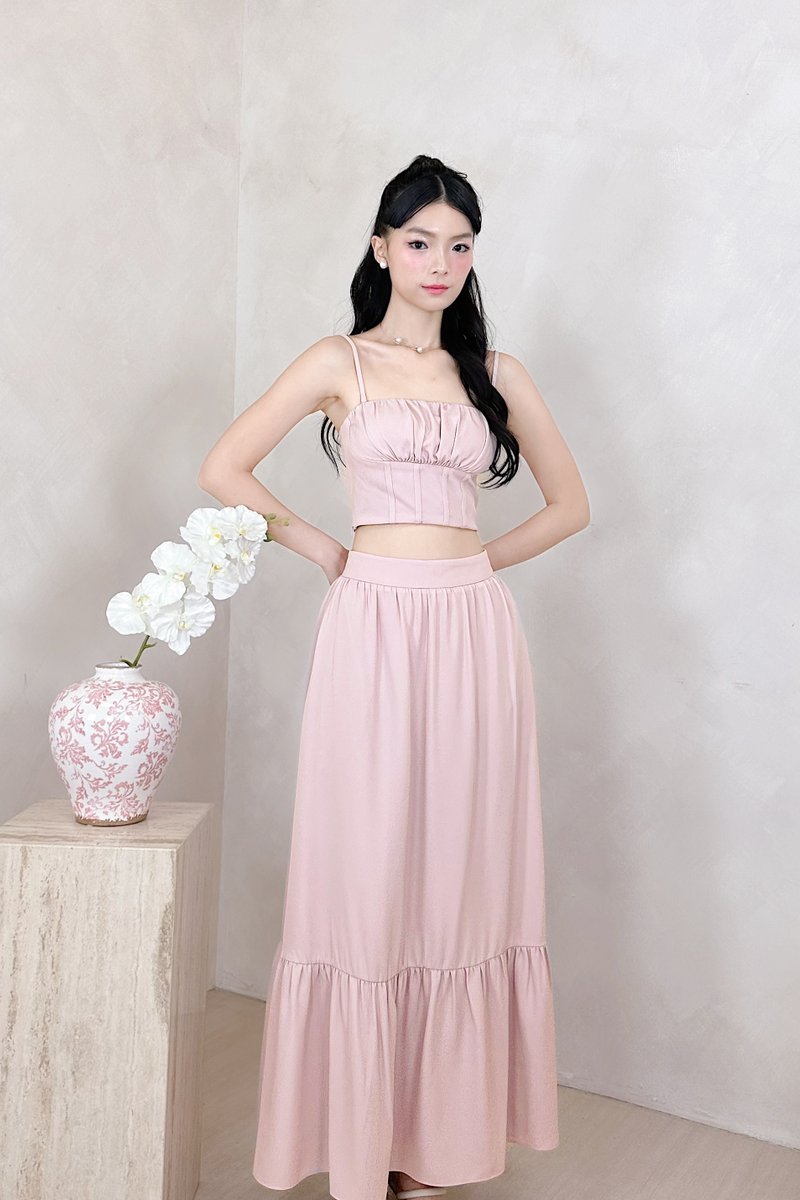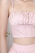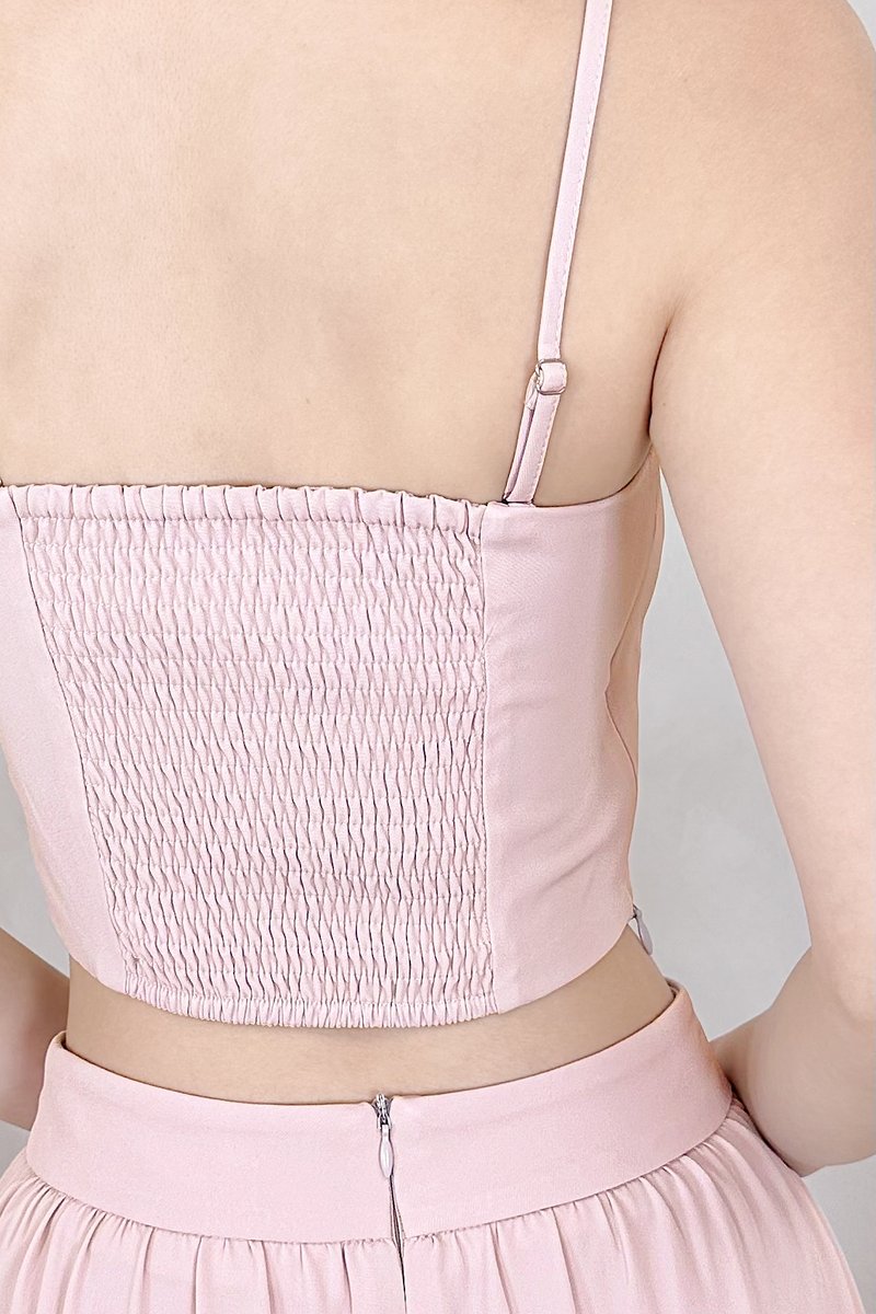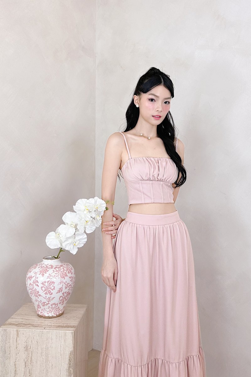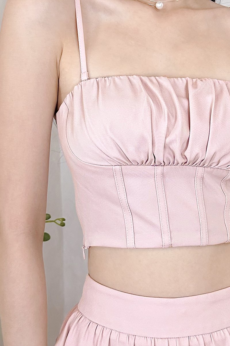 Thea Straight Neckline Pleated Corset Detailing Top in Dusty Pink