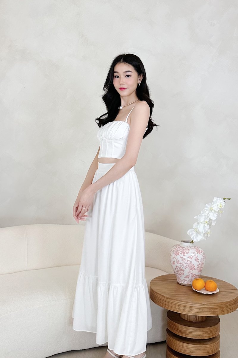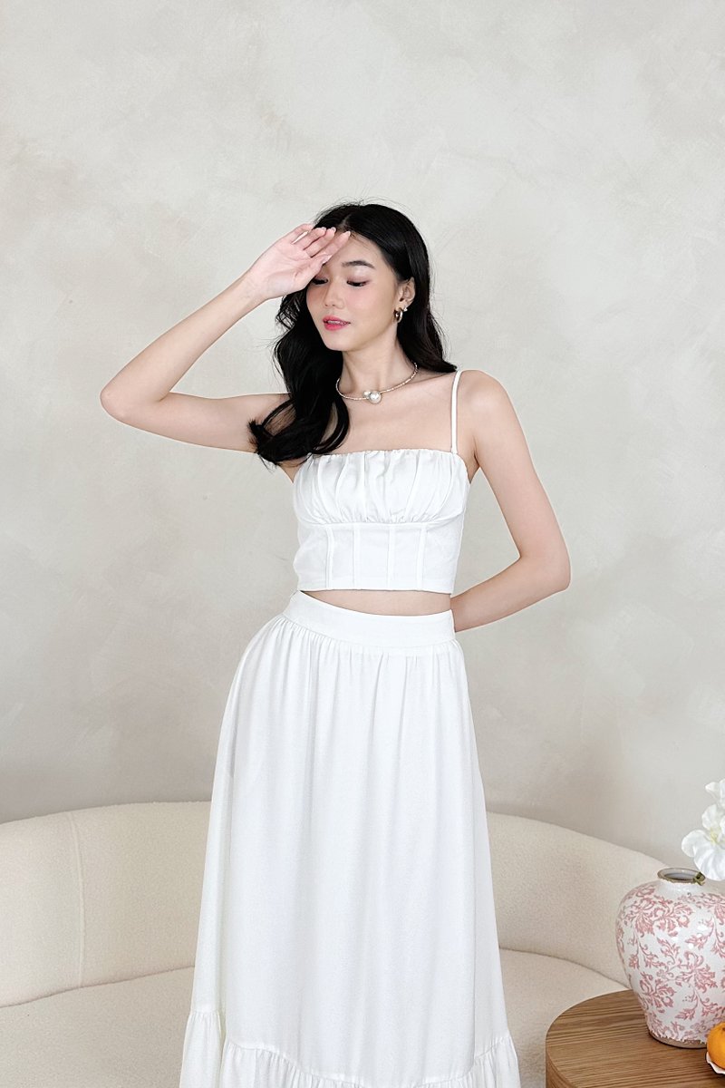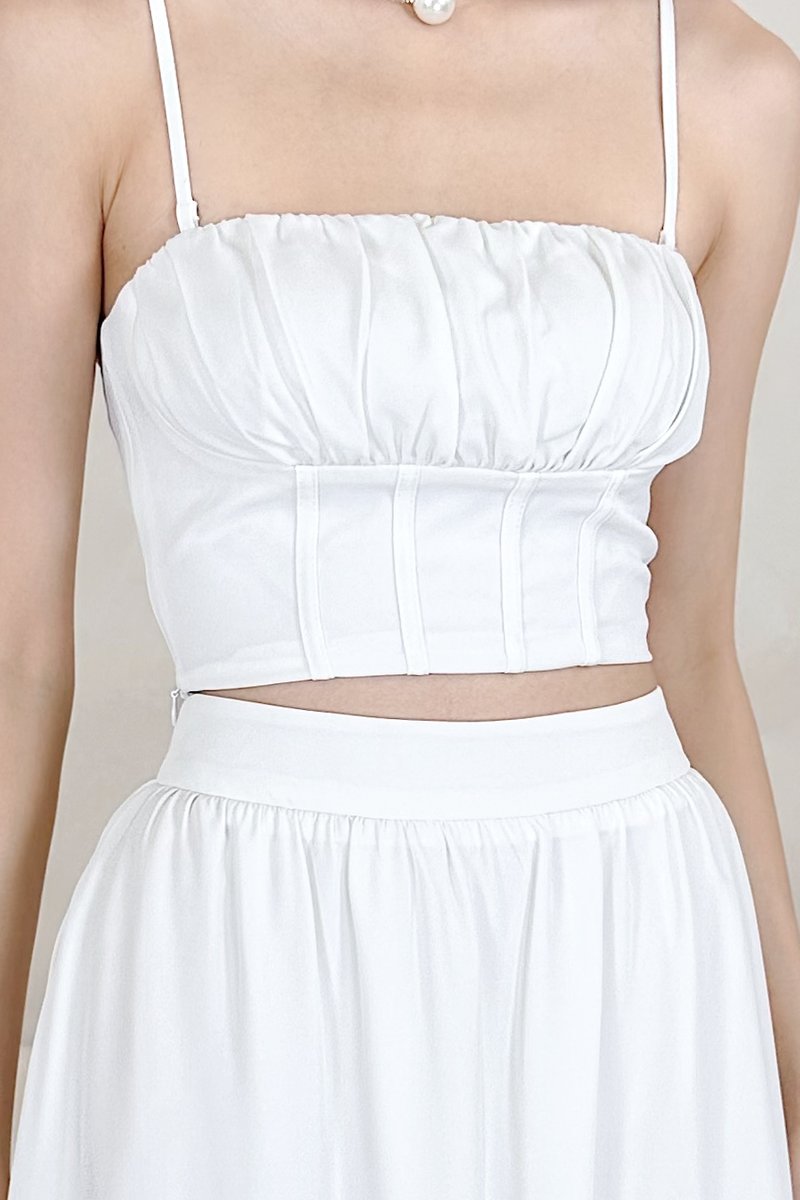 Thea Straight Neckline Pleated Corset Detailing Top in White