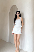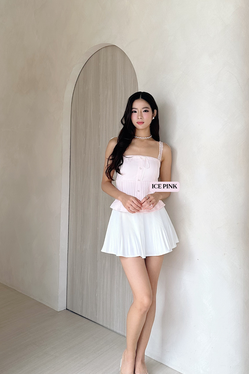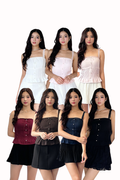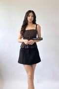 Made of polyester blend. Fully-lined. Non-sheer. Slightly stretchable due to smocked back. Comes with removable padding. Features straight neckline, self tie front ribbon, non-adjustable lace straps and concealed back zip. If you are in between sizes, you may choose to stick to your usual sizing.