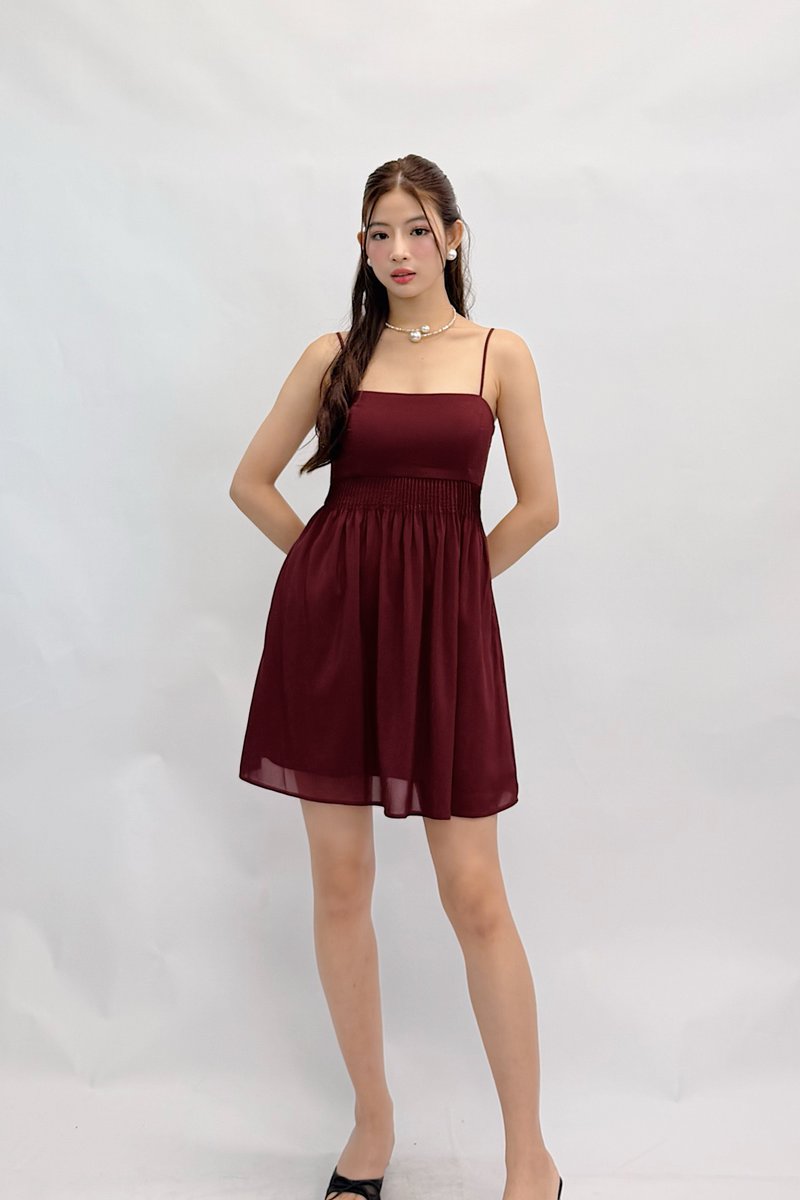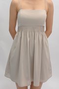 Made of polyester blend. Fully-lined. Non-sheer. Slightly stretchable due to smocked back and anti-slip band. Comes with one piece removable padding and matching color detachable shorts. Features adjustable detachable straps, pintuck detailing, functional pockets and concealed back zip. If you are in between sizes, you may choose to stick to your usual sizing.