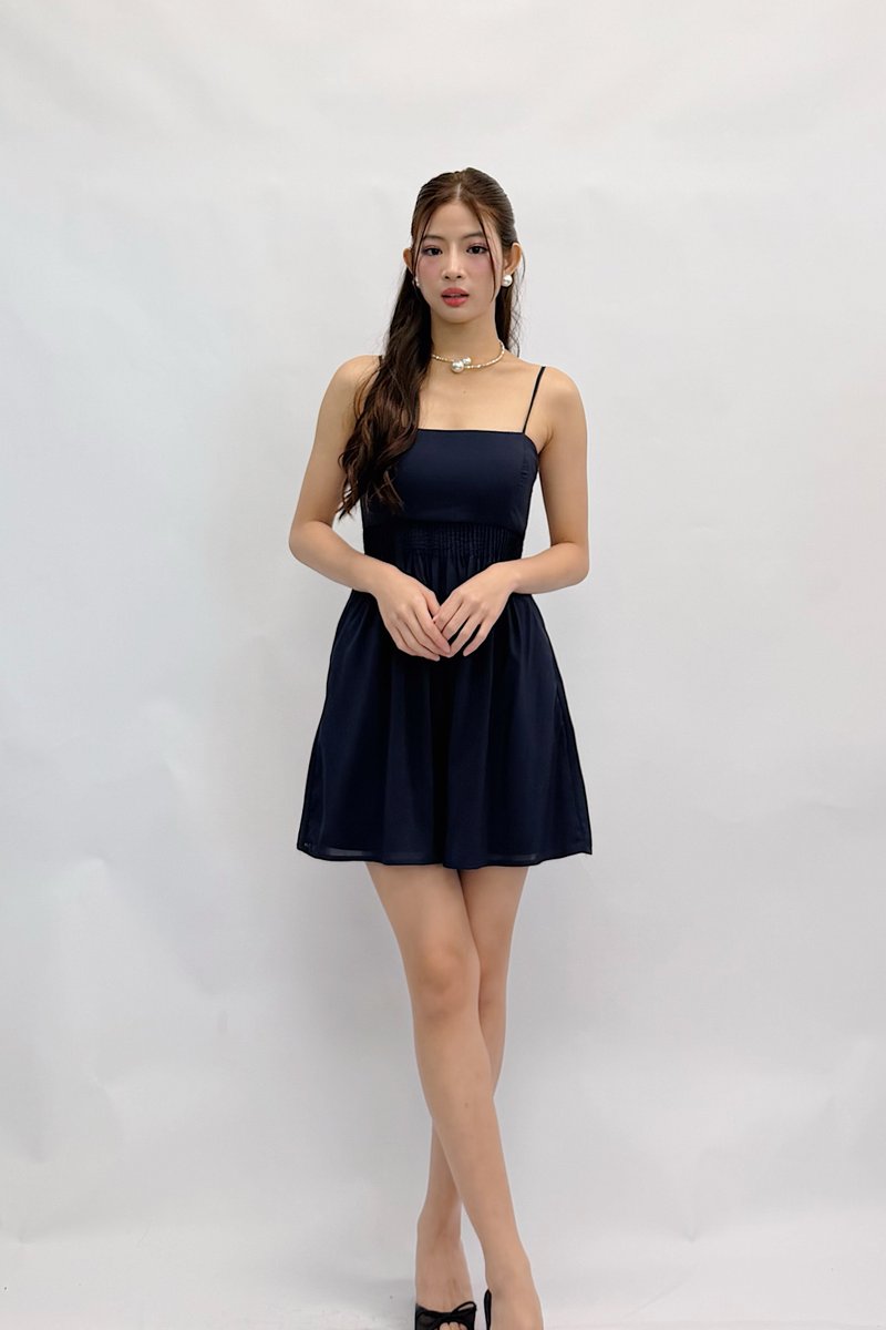 Our Viri Pintuck Dress blends timeless elegance with modern detailing. The structured upper contrasts effortlessly with the soft pleated skirt for a refined, feminine finish.