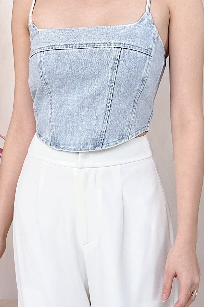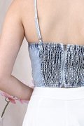 Made of denim. Fully-lined. Non-sheer. Slightly stretchable due to smocked back. Comes with removable one piece padding. Features straight neckline,corset detailing, curve hem, smocked back and open back zip. If you are in between sizes, you may choose to stick to your usual sizing.