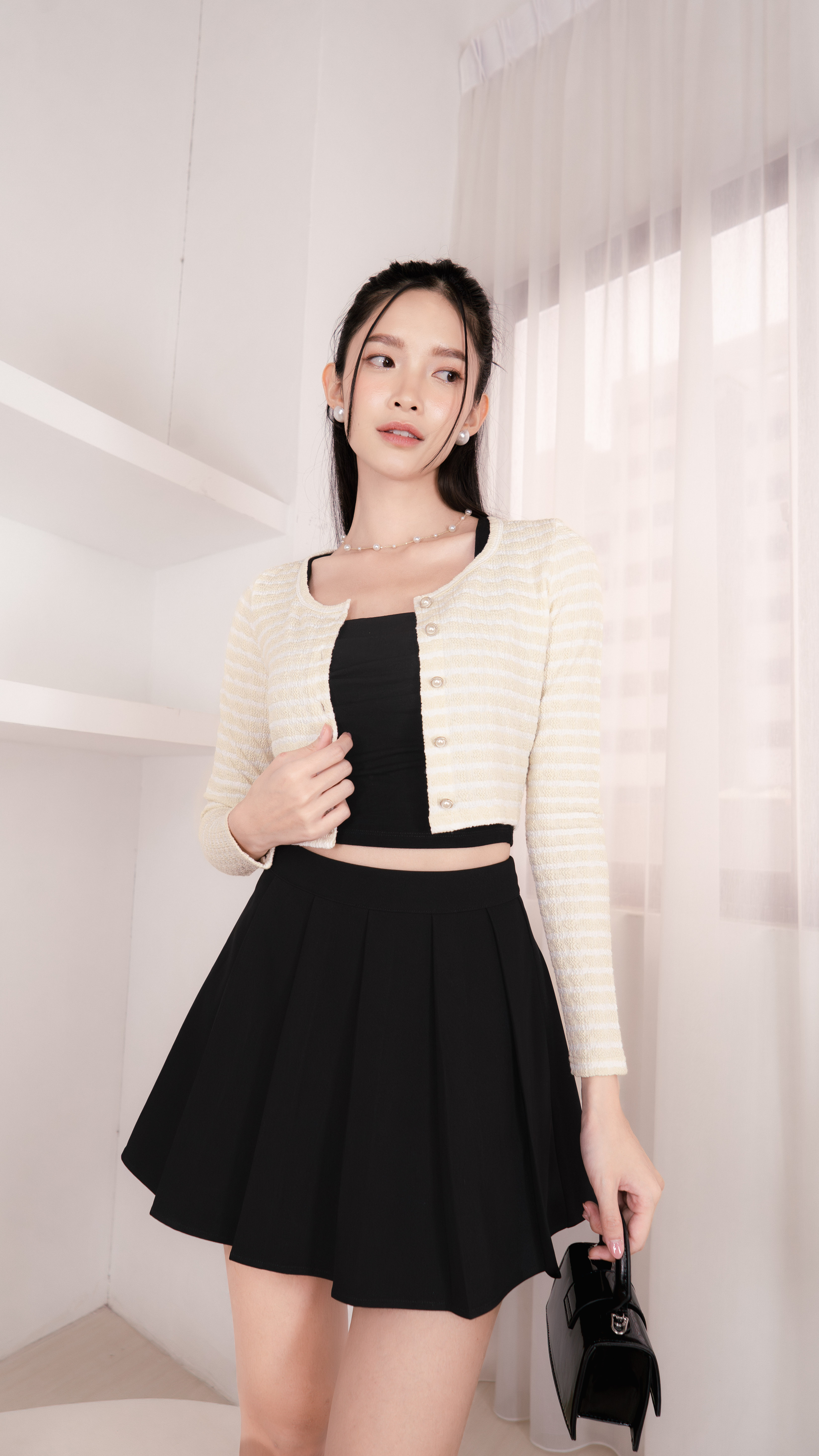 Constance Knit Stripe Pearl Button Top in Sunshine