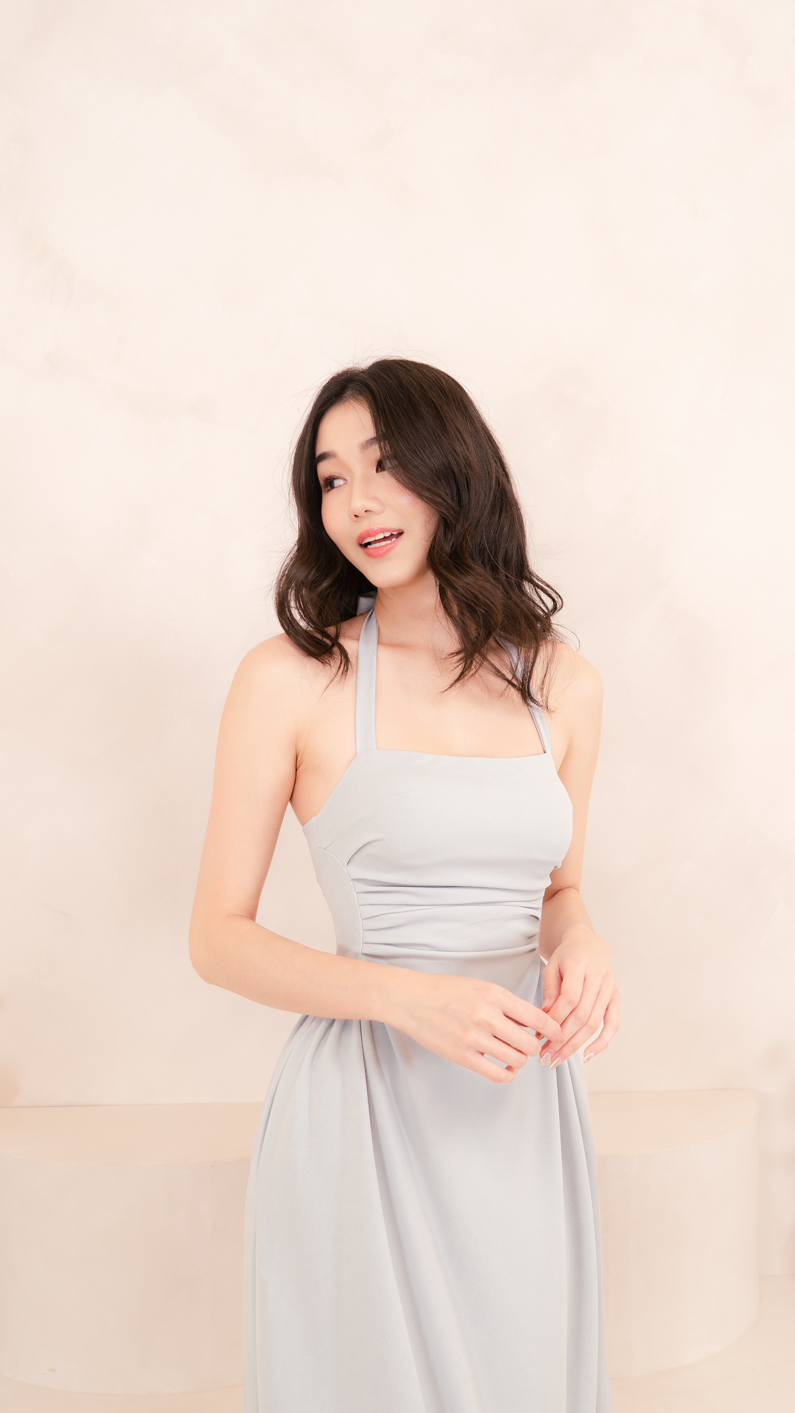 Ivette Self-tie Halter Midi Dress in Powder Blue