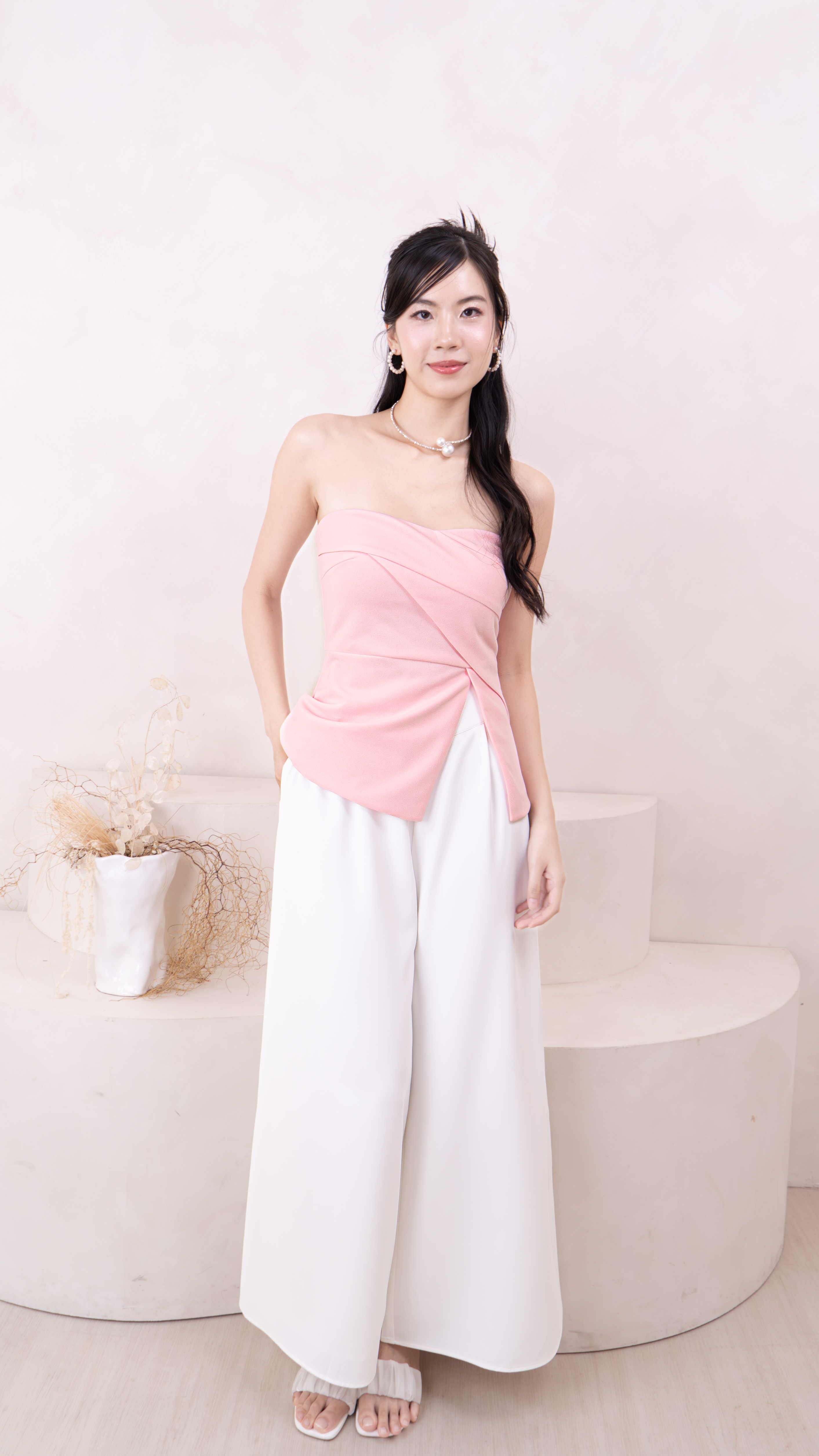 Imelda Padded Side Slit Peplum Top in Baby Pink