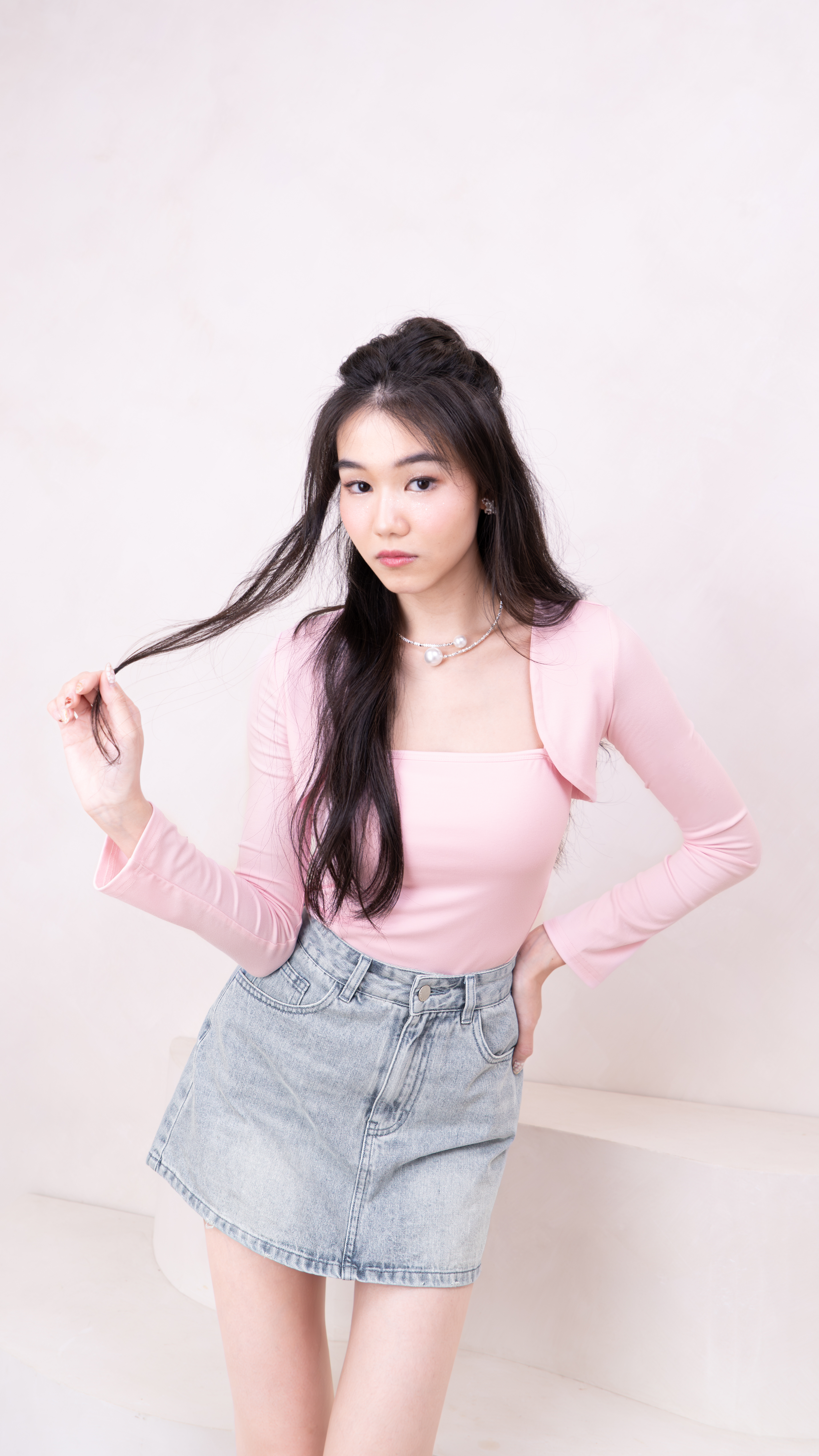 Melora Cami Top with Bolero Cardigan in Baby Pink