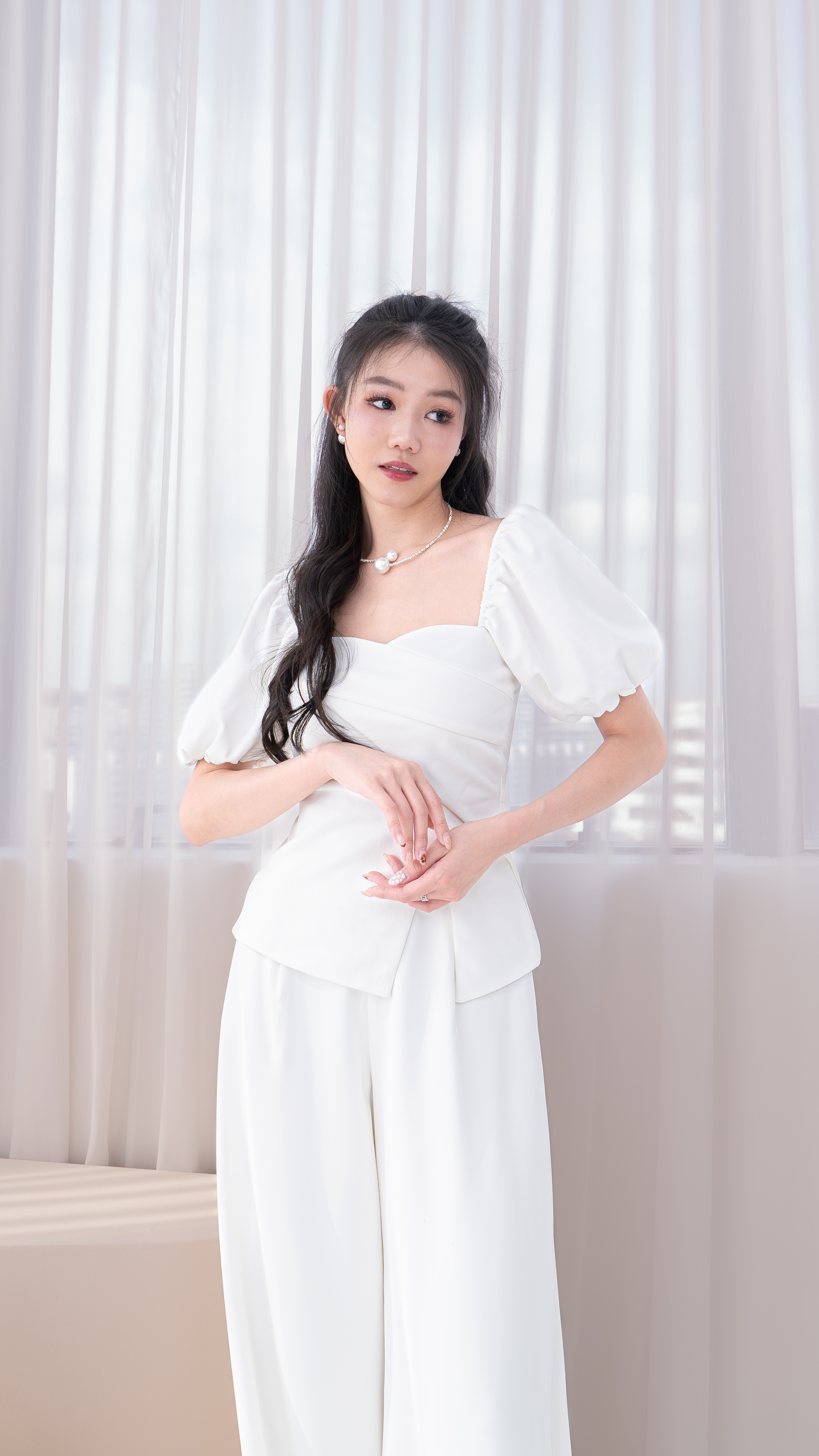 Imelda Padded Side Slit Peplum Sleeved Top in White