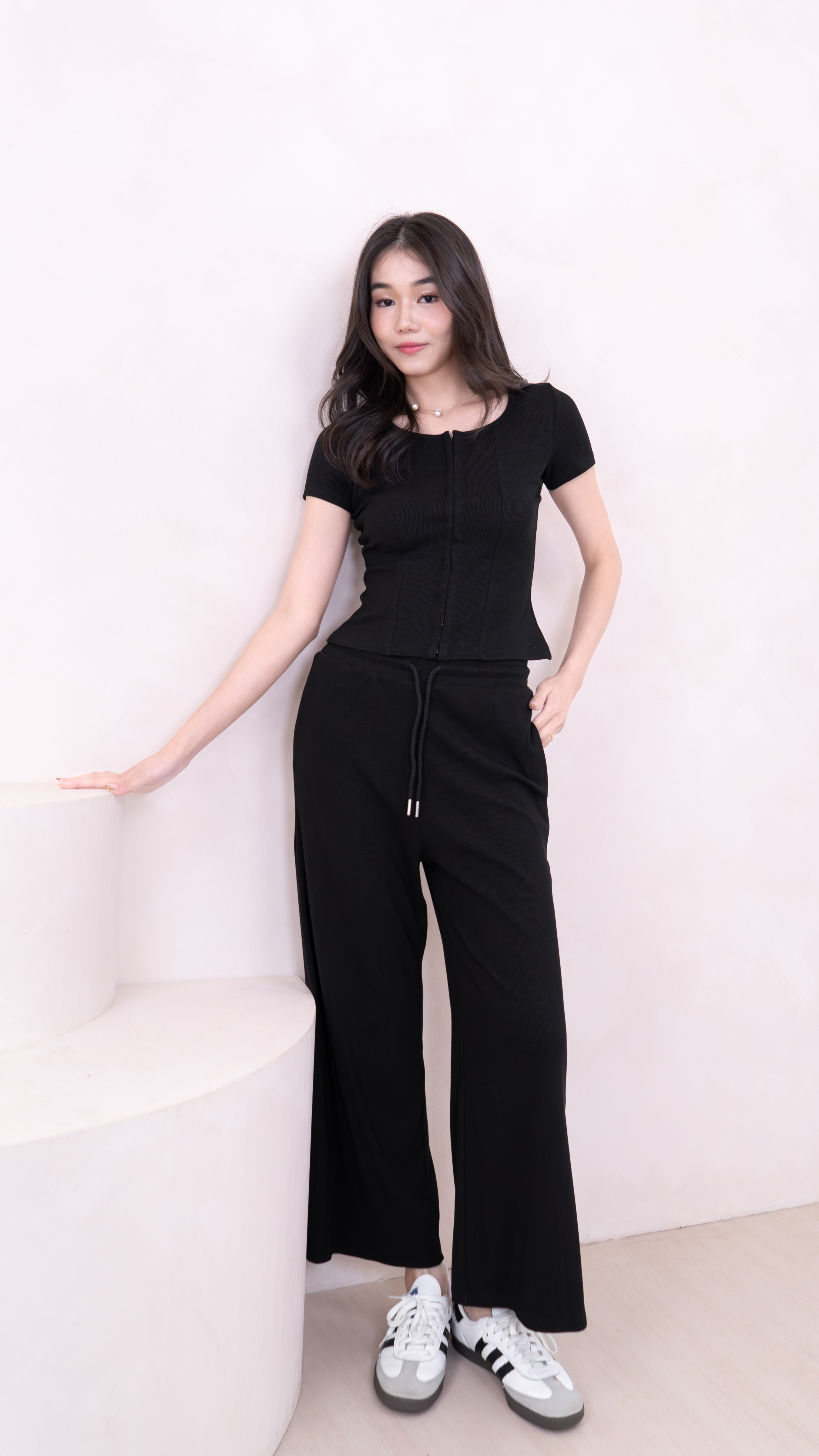*Petite* Canice Ribbed Knit Petite Drawstring Joggers in Black