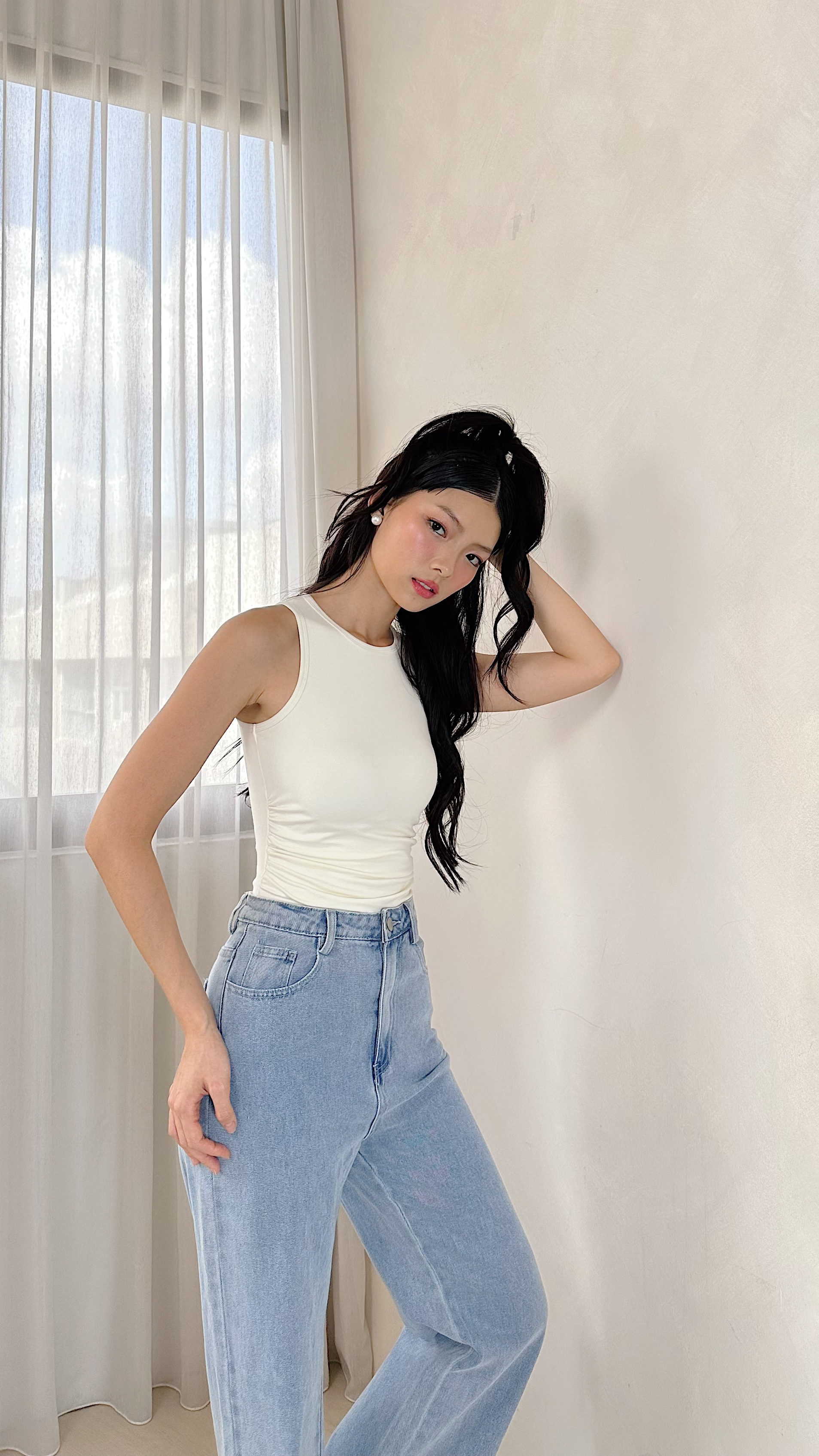 (BARE/BASIC) Marisa V3 Racer Side Ruched Top in Ice Yellow