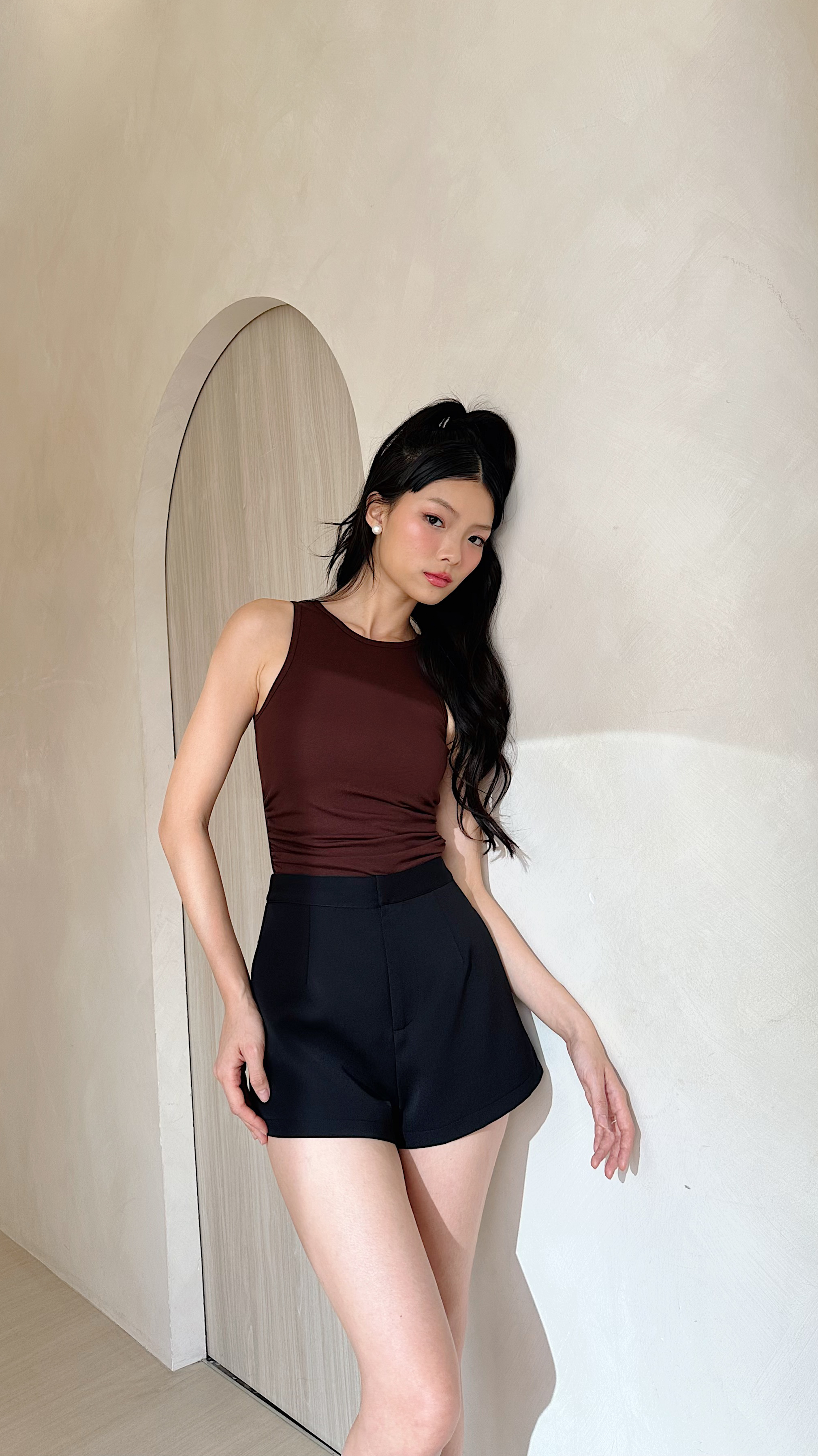 (BARE/BASIC) Marisa V3 Racer Side Ruched Top in Chocolate